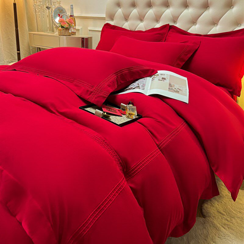 简约结婚铺床上用品100亲肤磨毛秋冬酒红色床单款四件套Z婚庆纯色