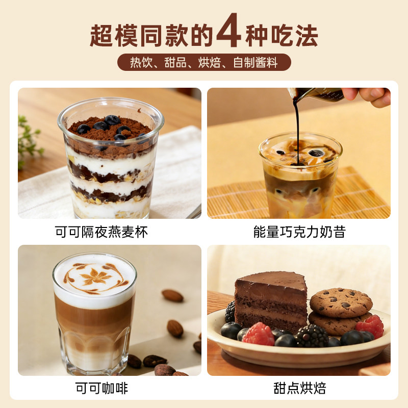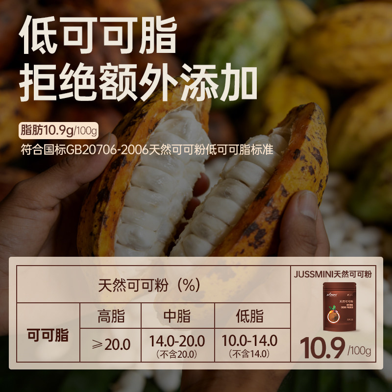 JUSSMINI生可可粉未碱化无添加糖天然纯低脂热巧克力烘焙冲饮代餐