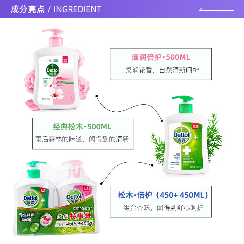 【自营】滴露滋润洗手液多款香型专业抑菌清洁杀菌儿童学生家用