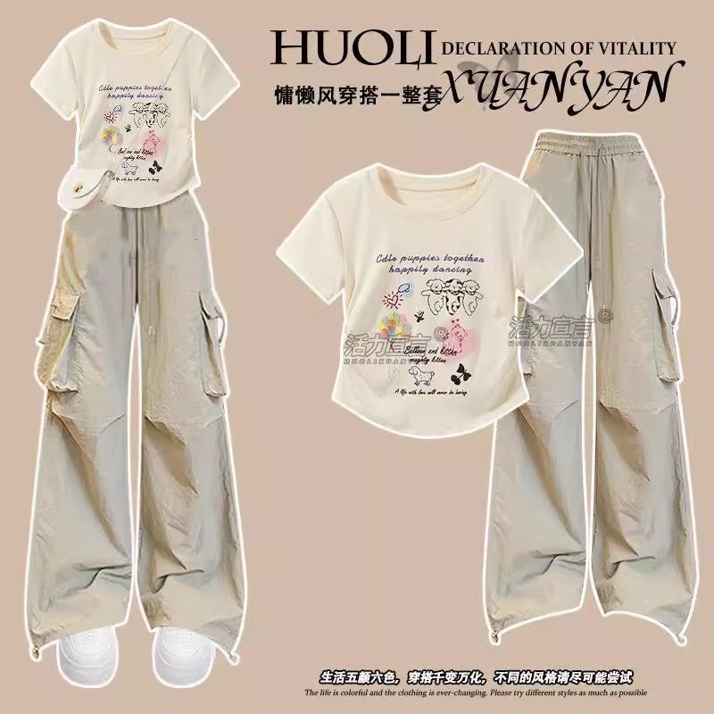 女童夏装短袖套装2025新款中大童学生洋气时髦网红工装裤子两件套