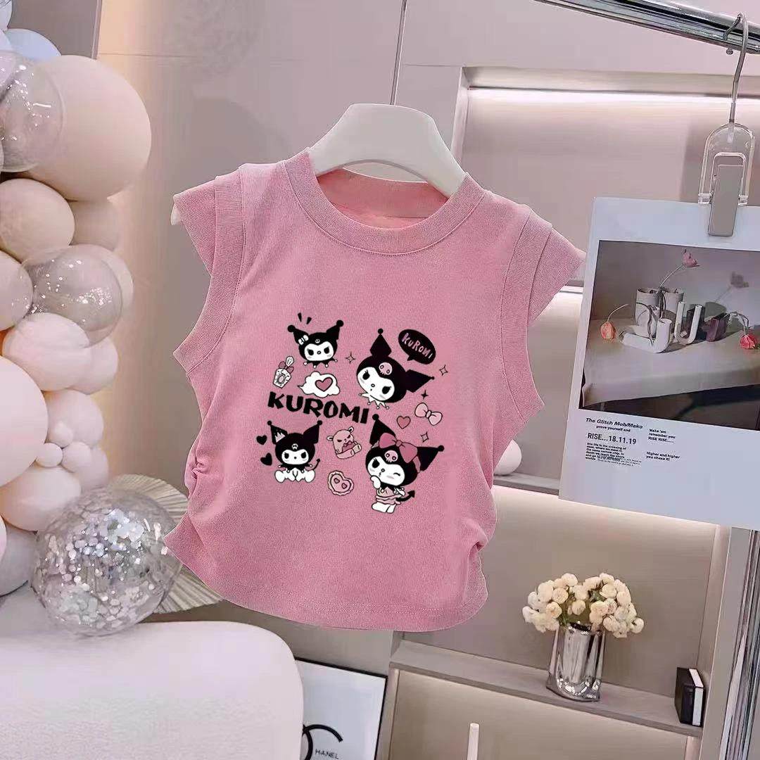 宝宝无袖纯棉上衣儿童背心女童夏装卡通T恤上衣卡通字母印花夏季