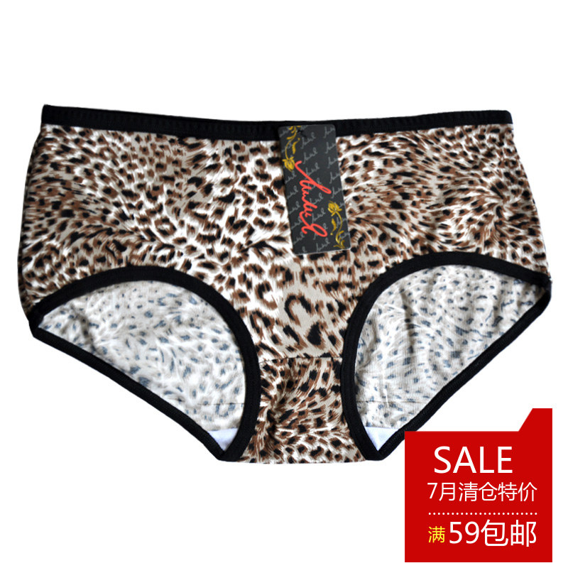 莫代尔性感豹纹中腰无痕三角内裤