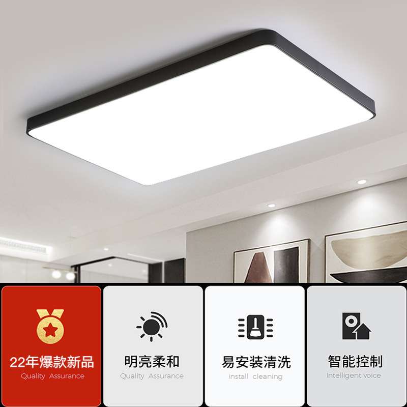 2023客厅吸顶灯具led长方形简约现代大气北欧家用办公室平板大灯