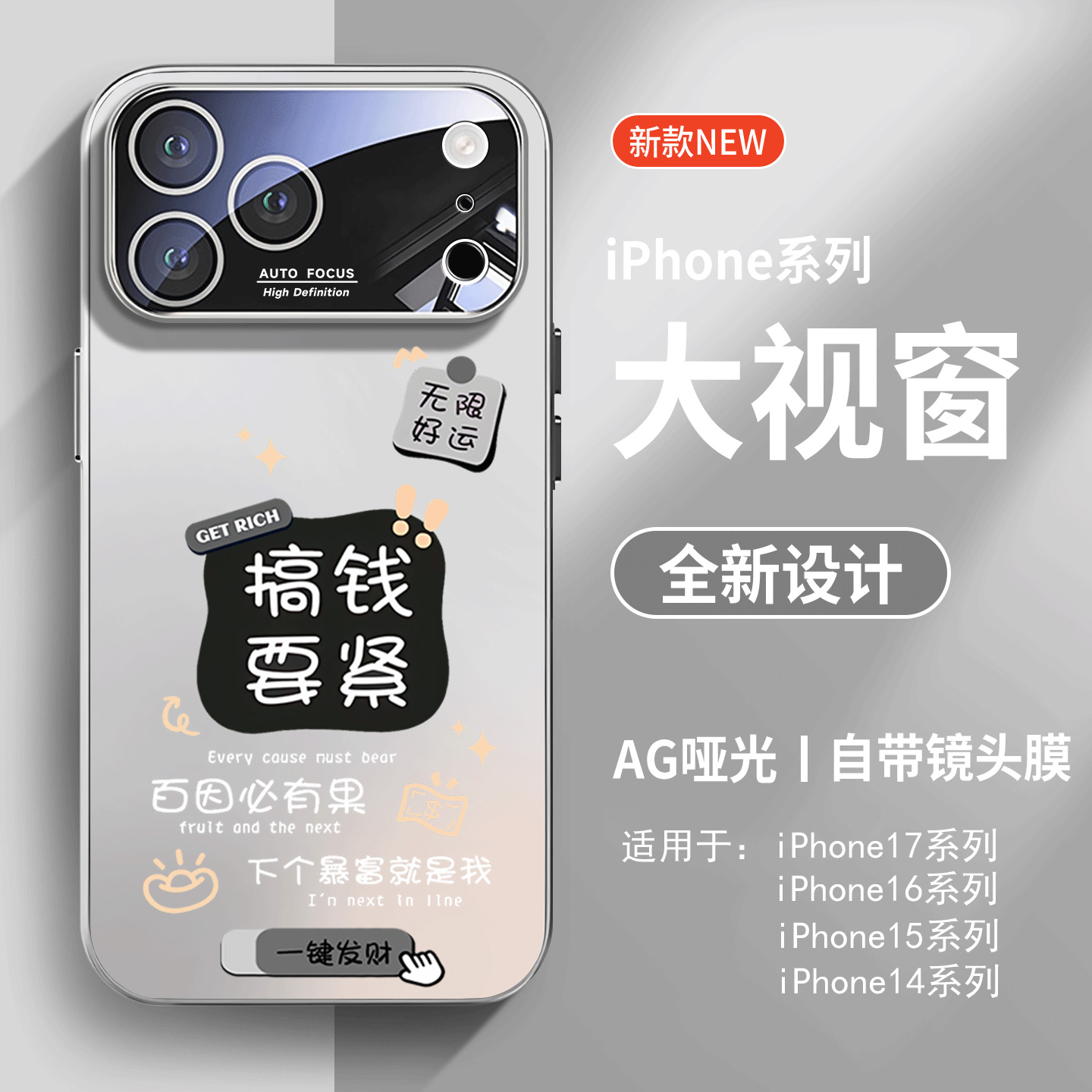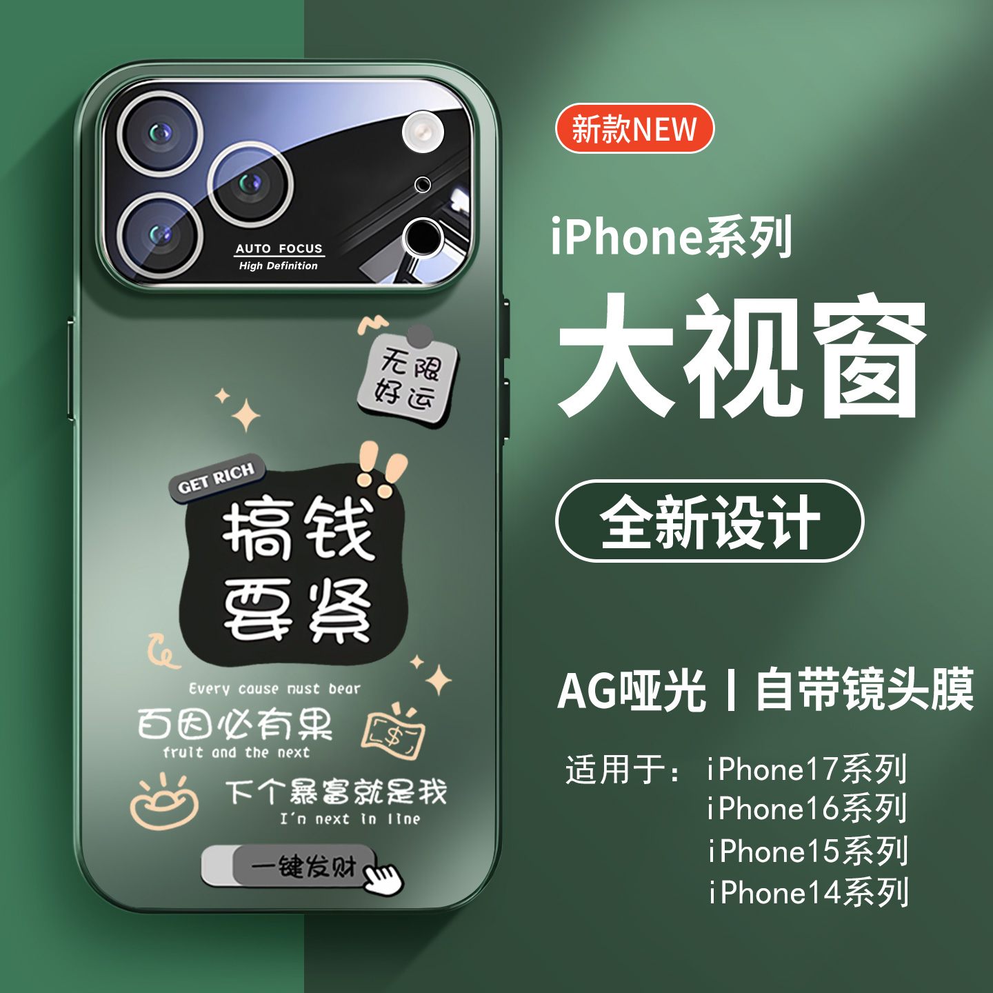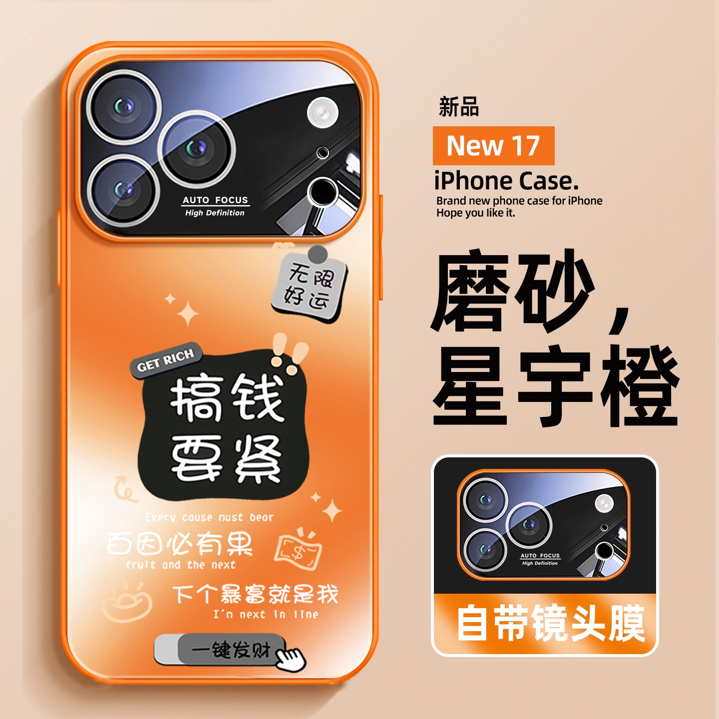 适用苹果17promax手机壳新款iPhone16promax自带镜头膜14Pro简约卡通15搞钱要紧潮牌16超薄14磨砂玻璃13硬壳