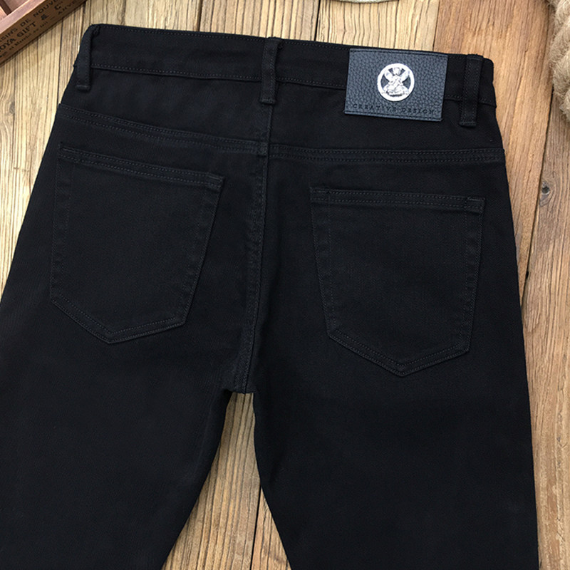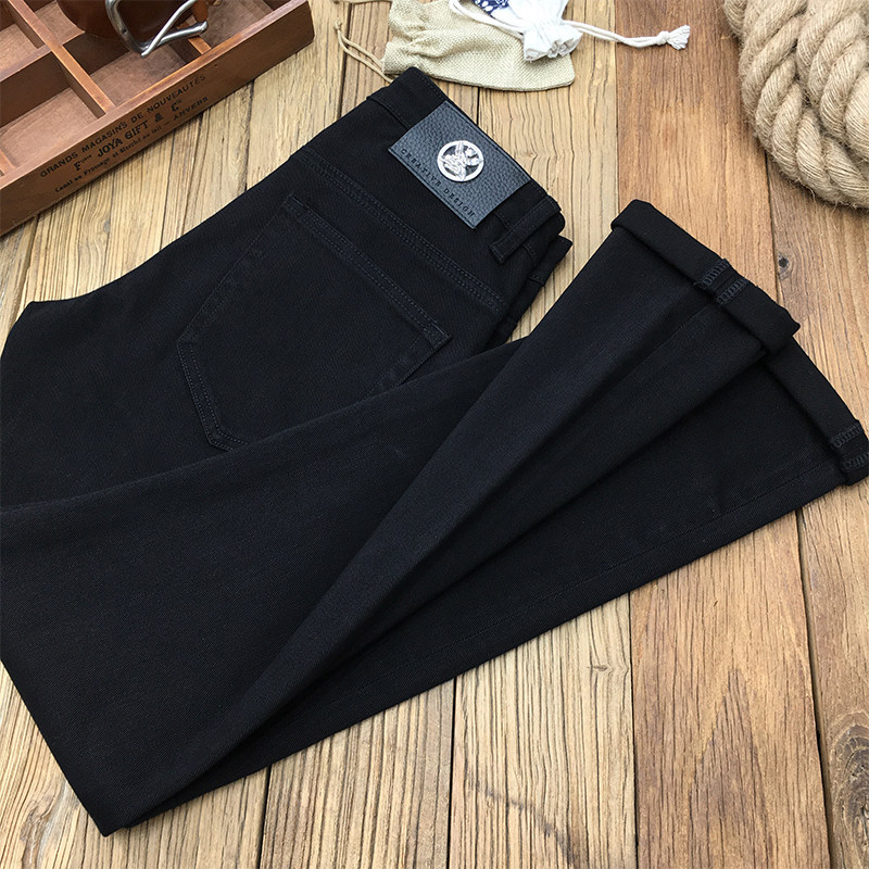 黑色九分裤男秋冬款潮流韩版弹力休闲修身小脚高端纯黑色牛仔长裤