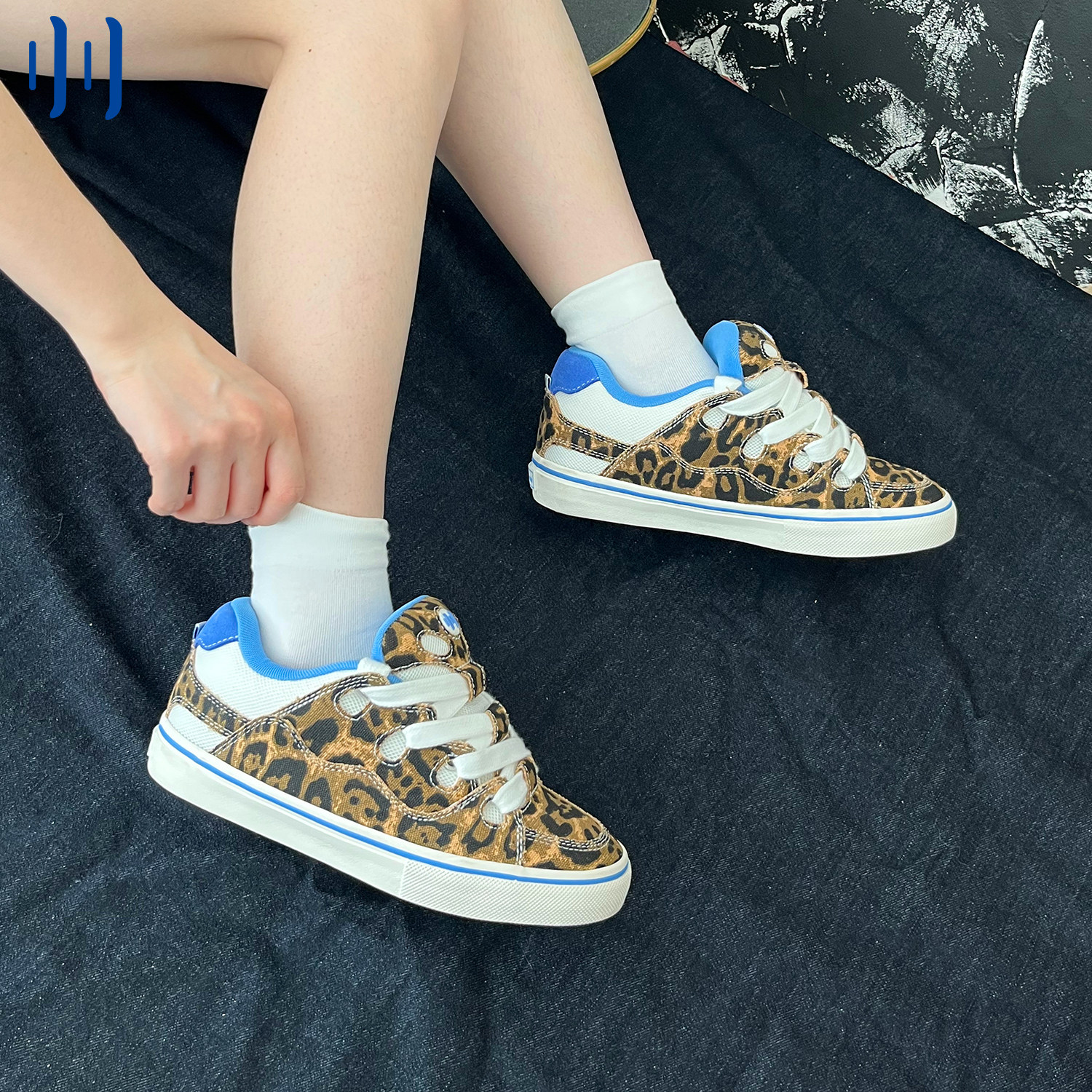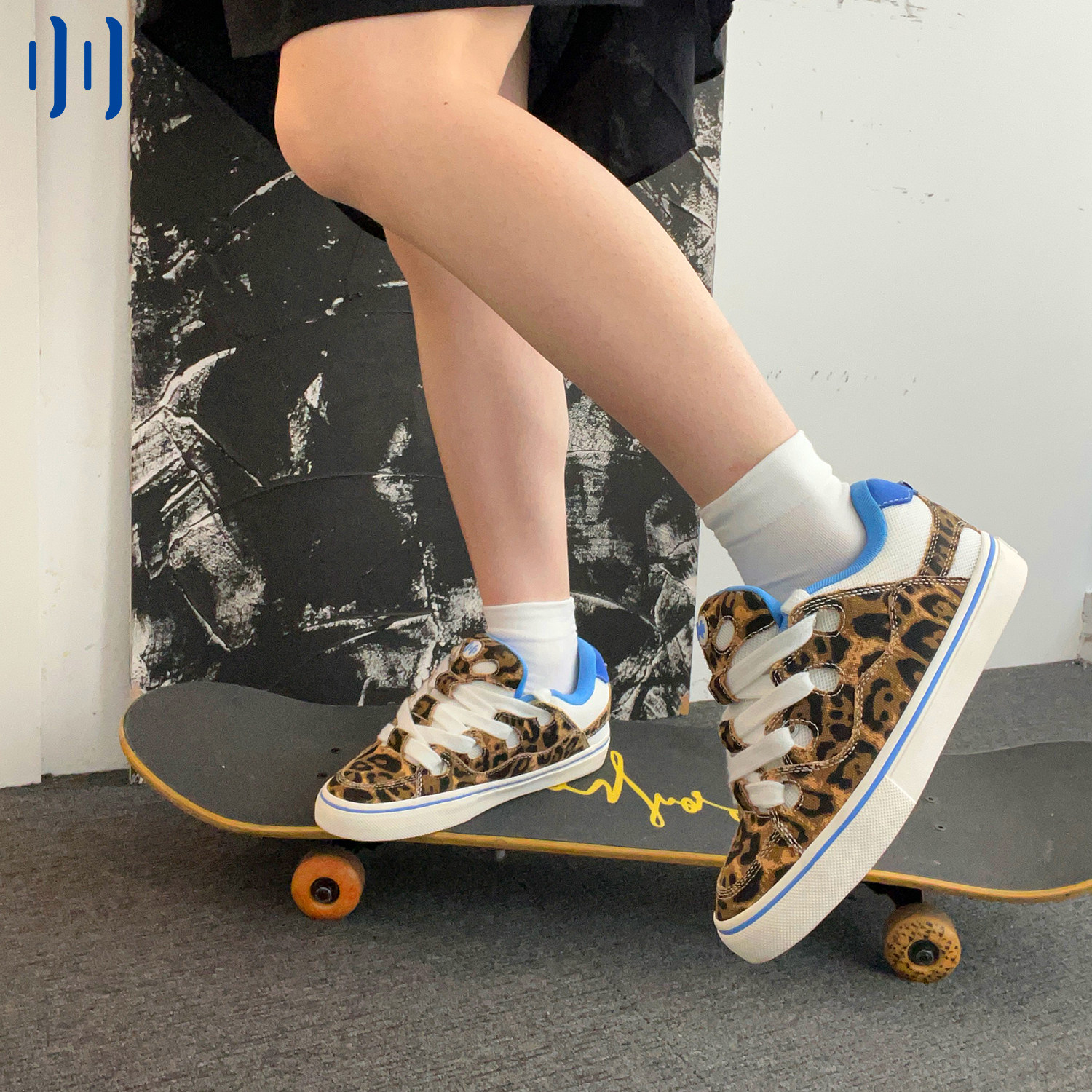 顽刻官方面包鞋豹纹印花BAKE复古休闲低帮男女国潮滑板鞋
