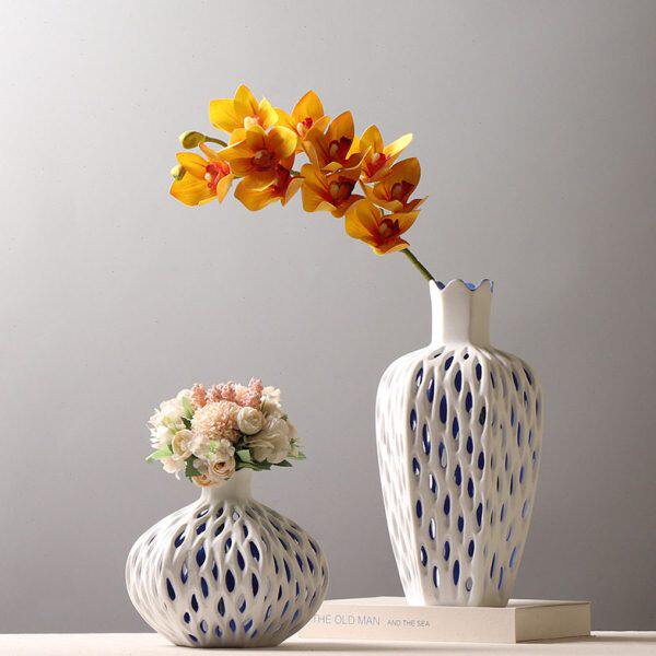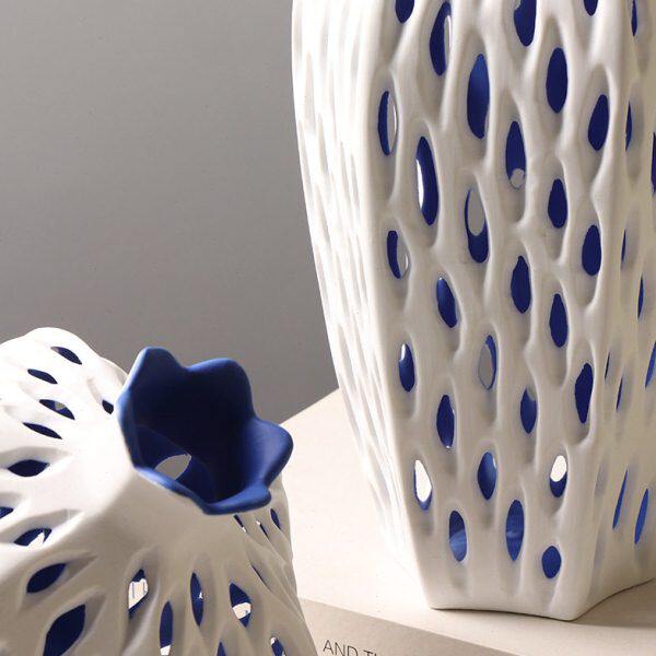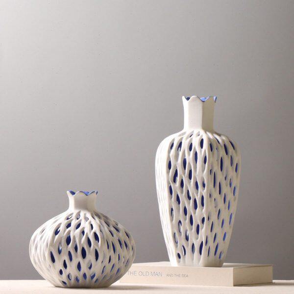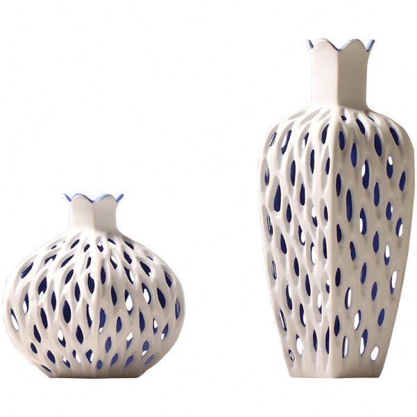 简约现代创意镂空杨桃花瓶样板房酒店轻奢插花装饰品摆件台面陶瓷