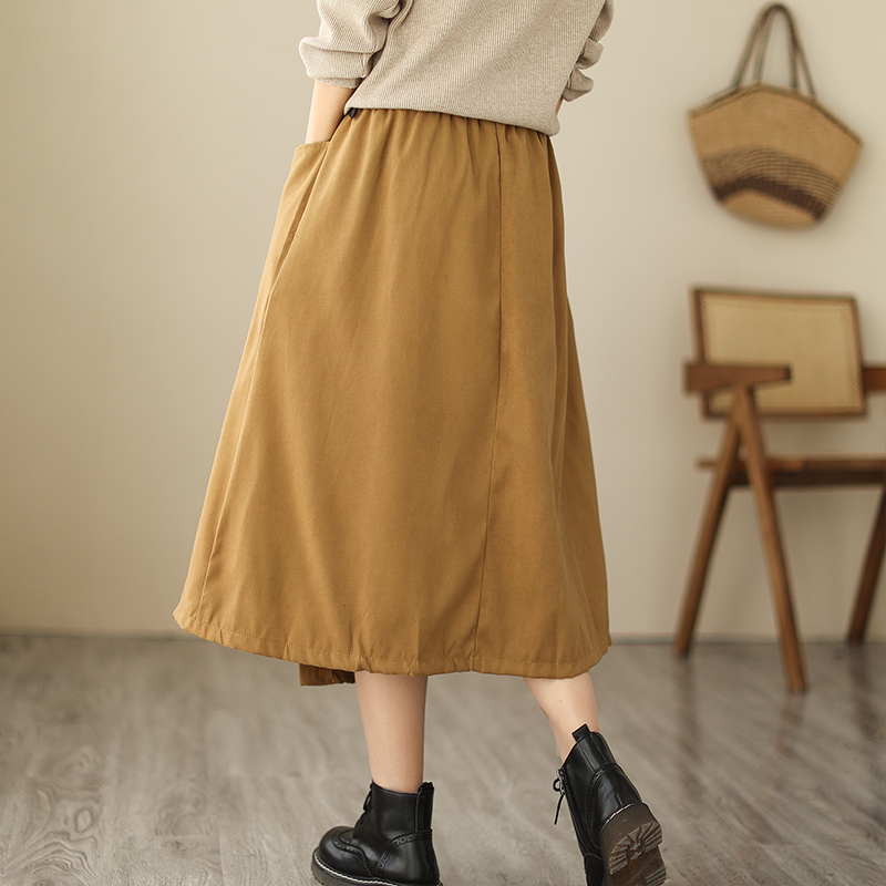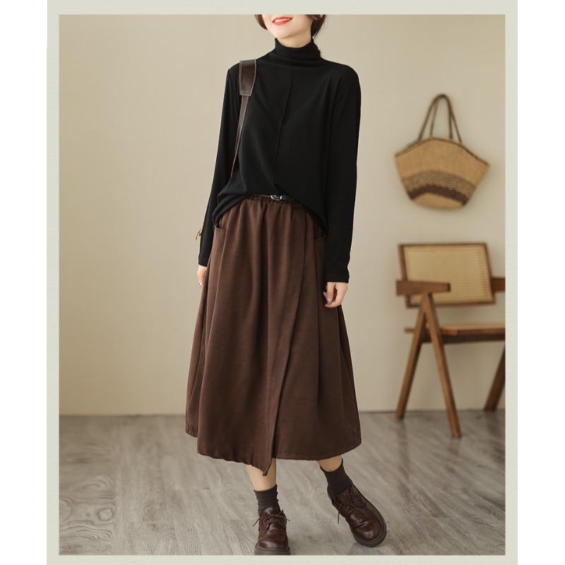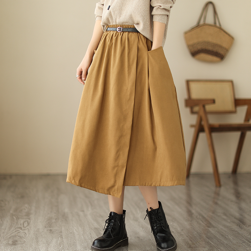 实拍 送腰带 复古半身裙女松紧腰显瘦A字裙中长款气质半裙