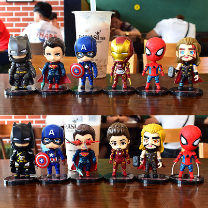 Q版复仇者联盟手办全套模型摆件钢铁蜘蛛侠美队绿巨人偶儿童玩具