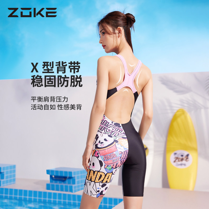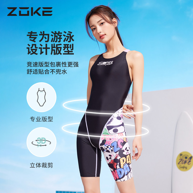 洲克女士游泳专用泳衣zoke新款耐氯专业竞速训练连体平角五分泳衣