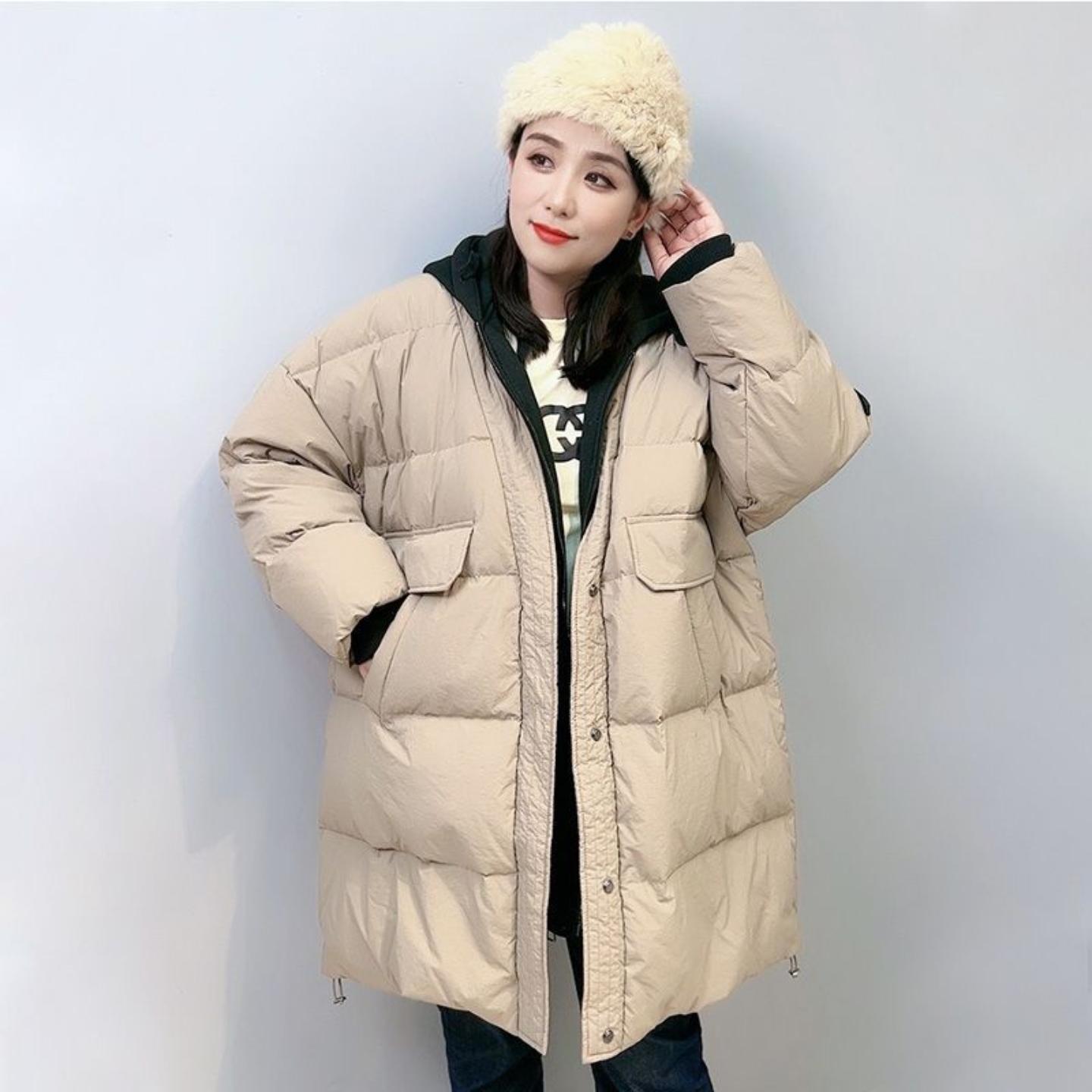 九江羽绒官方旗舰店韩版加厚加大码300斤羽绒服女冬季新中长款白