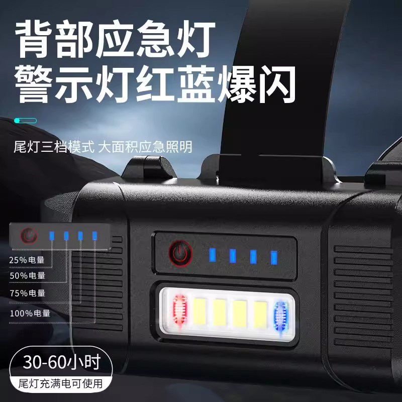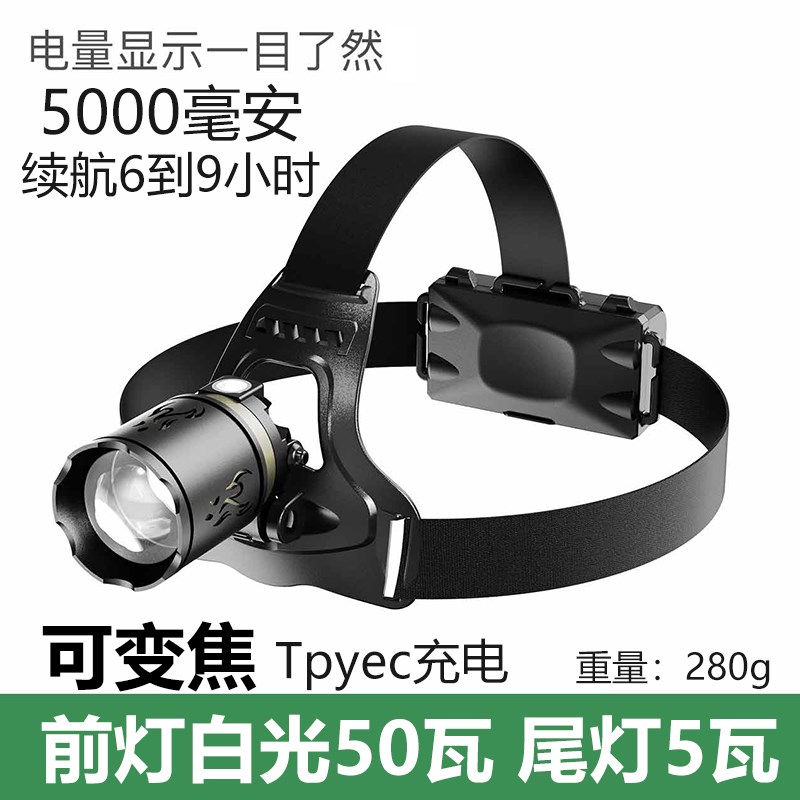 久量强光头灯LED可变焦充电头戴式电筒钓鱼防雨水矿灯应急灯7249