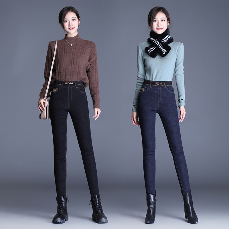 白鸭绒羽绒牛仔棉裤女冬外穿新款显瘦高腰高弹时尚踩脚保暖铅笔裤