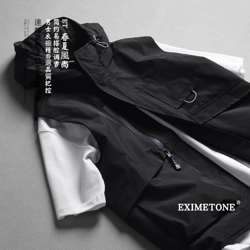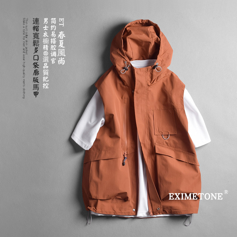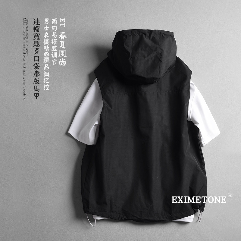 男士连帽休闲马甲2025春秋多口袋机能风坎肩山系宽松背心薄款外套