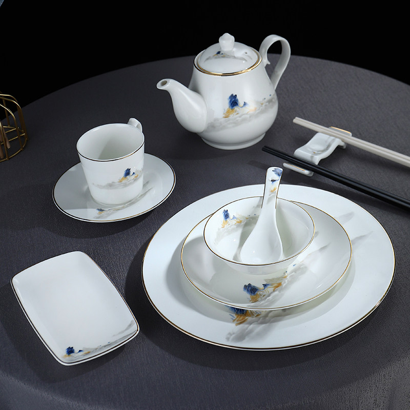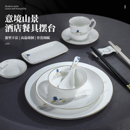 中式高档骨瓷餐具套装酒店会所摆台瓷器饭店包间私厨定制摆台碗盘