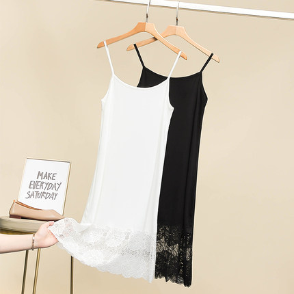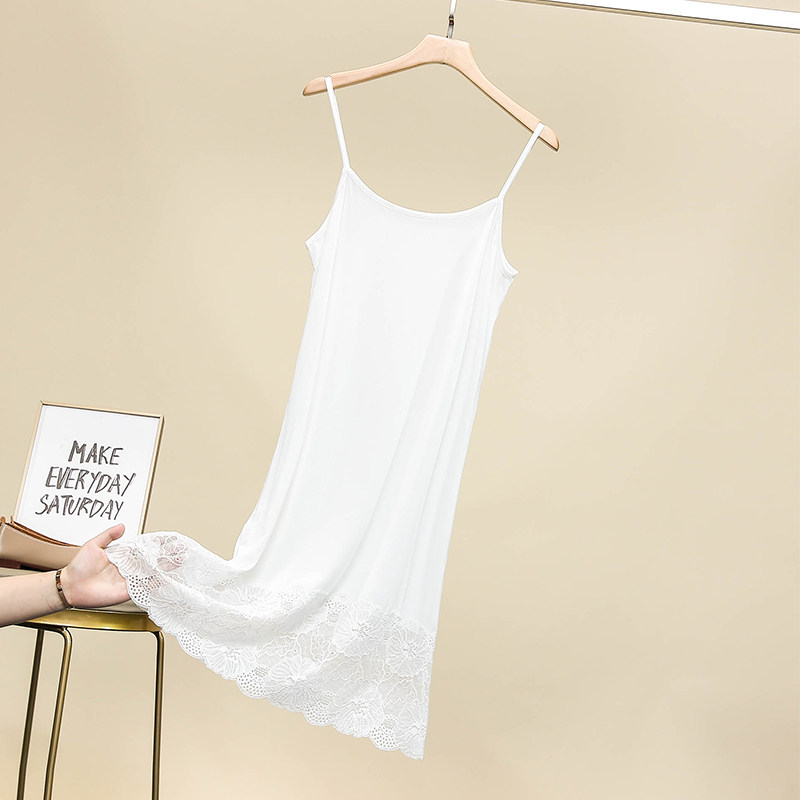 春夏莫代尔打底吊带裙中长款内搭防透连衣裙蕾丝花边衬裙背心裙女