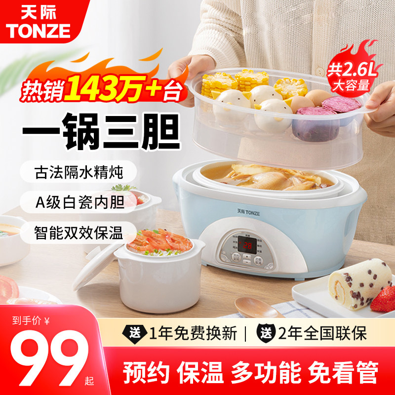 天际电炖炖锅陶瓷电炖盅炖汤煮粥煲汤锅隔水炖锅煲燕窝炖盅家用