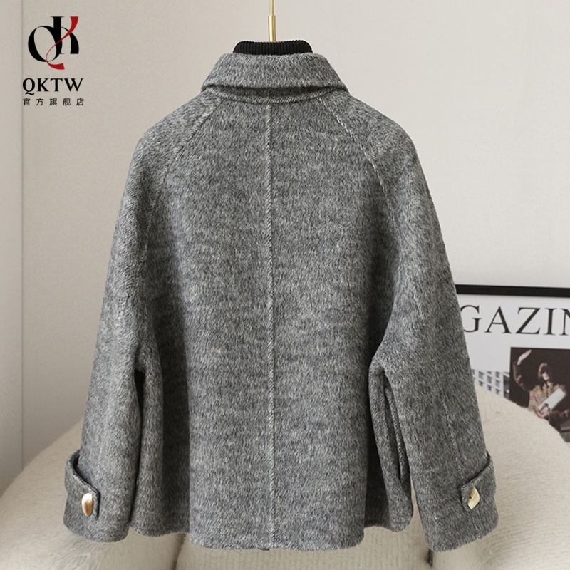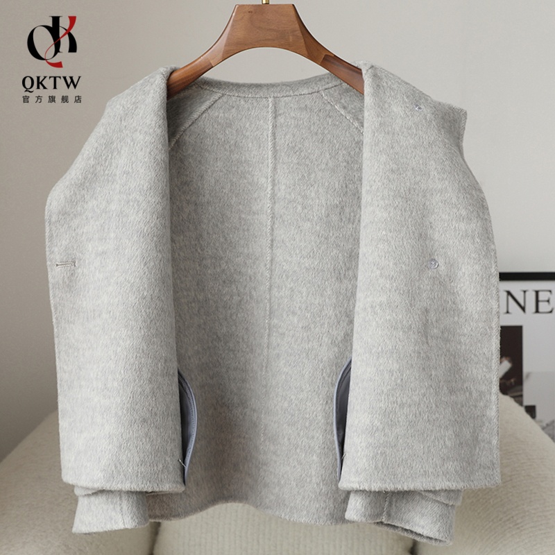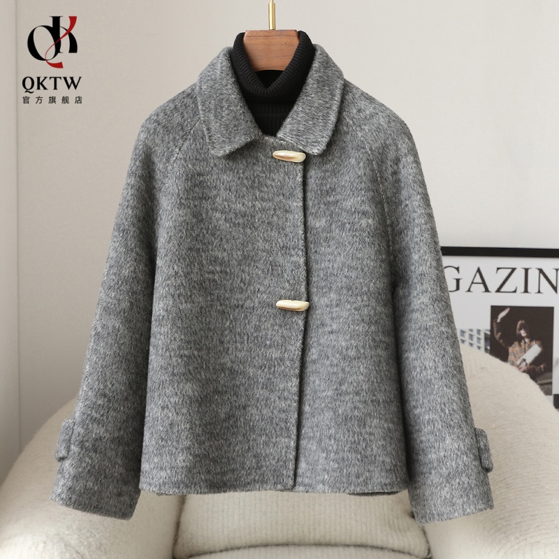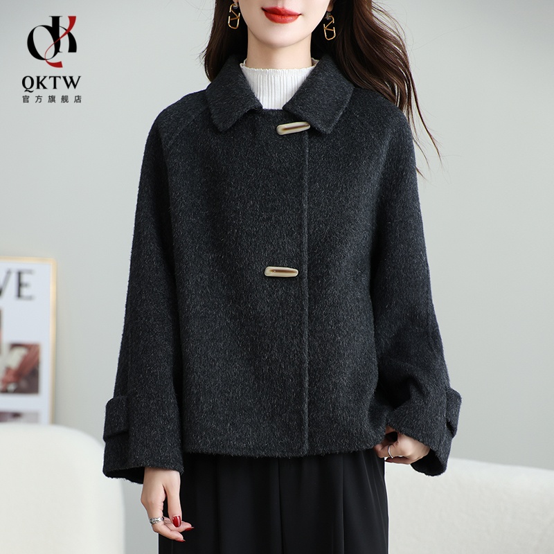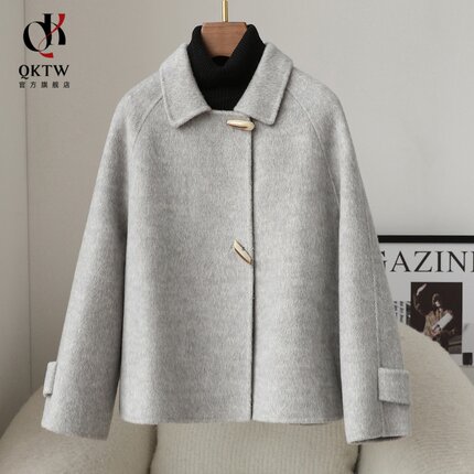毛呢外套女2025新款秋冬季中老年牛角扣双面绒上衣短款小个子大衣
