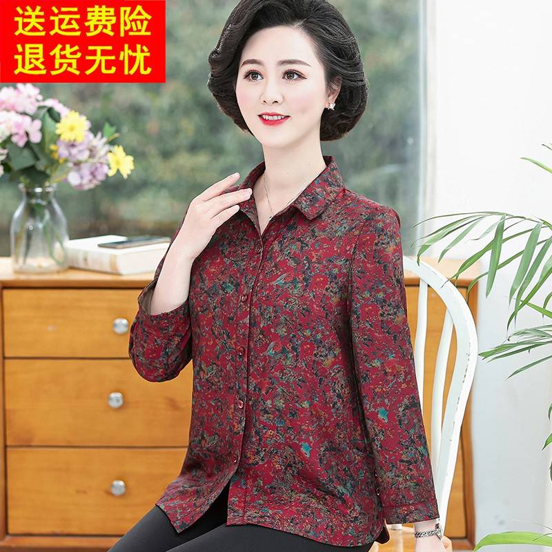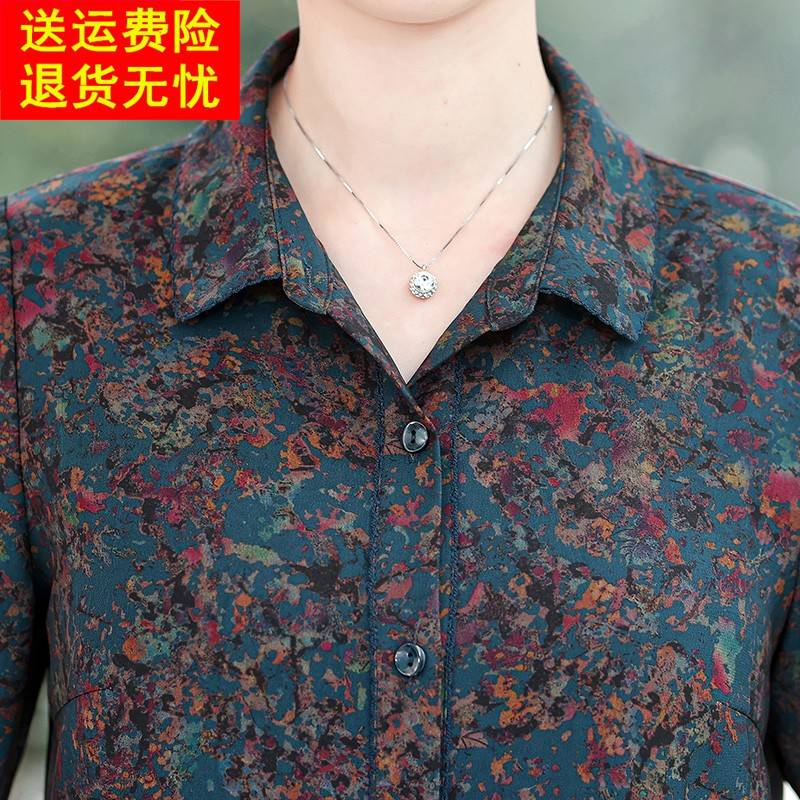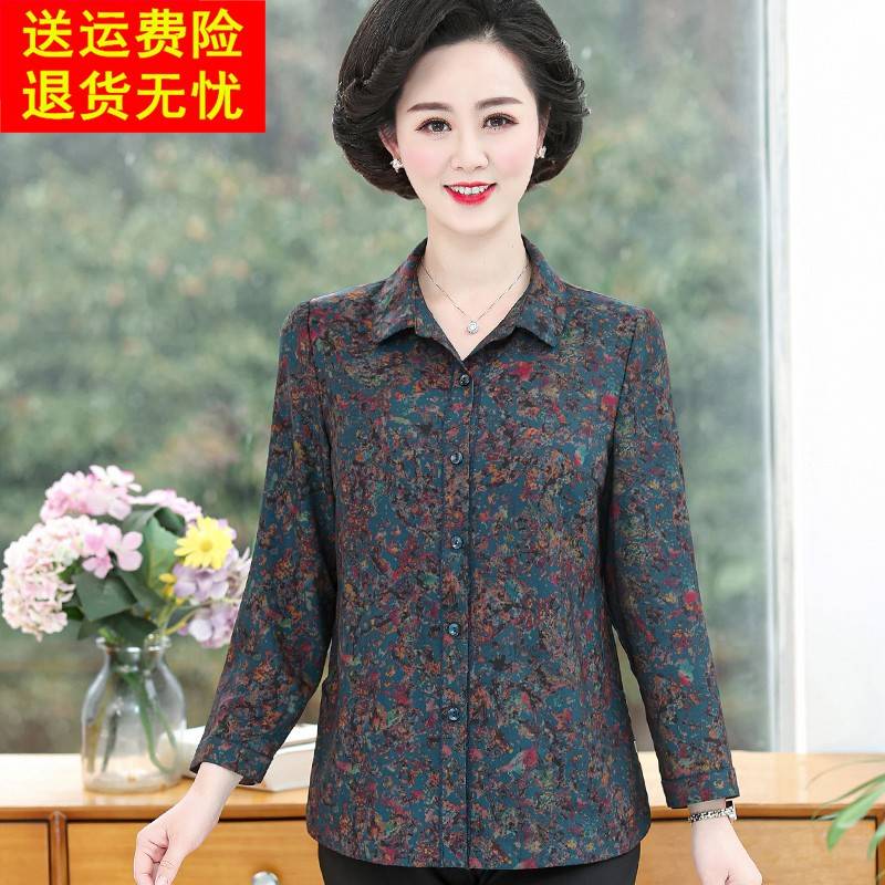 妈妈夏装碎花衬衫中老年人女长袖衬衣60岁70老奶奶老太太春夏上衣