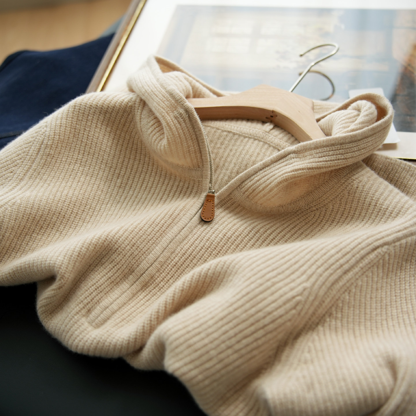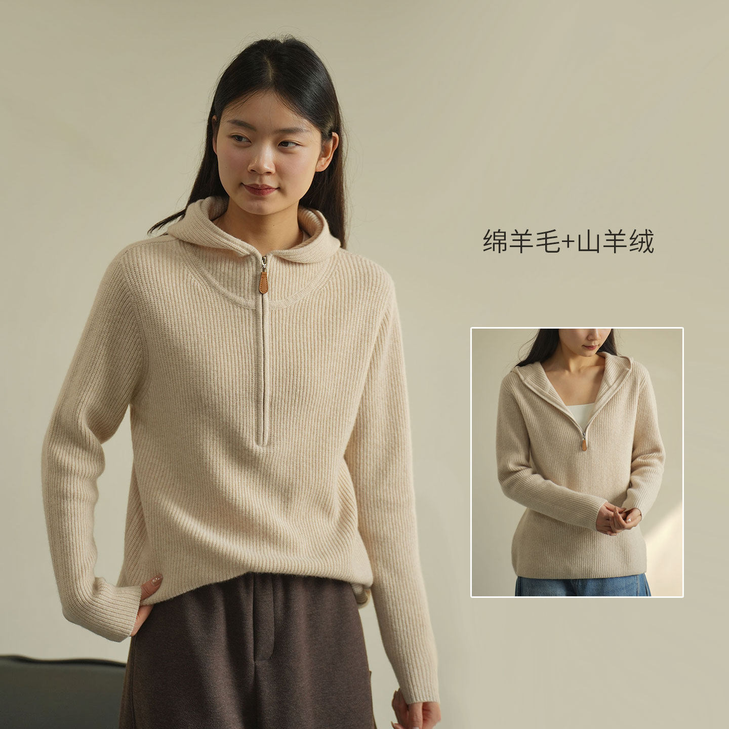 羊毛+羊绒女士连帽毛衣