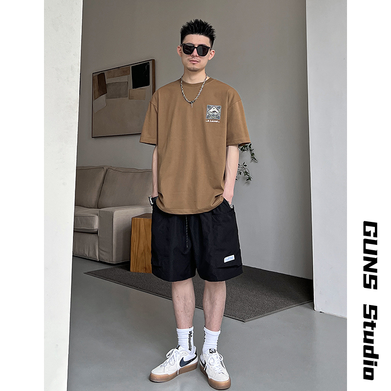 杠叔夏季休闲宽松圆领短袖T恤男韩版痞帅五分袖美式潮流半袖上衣