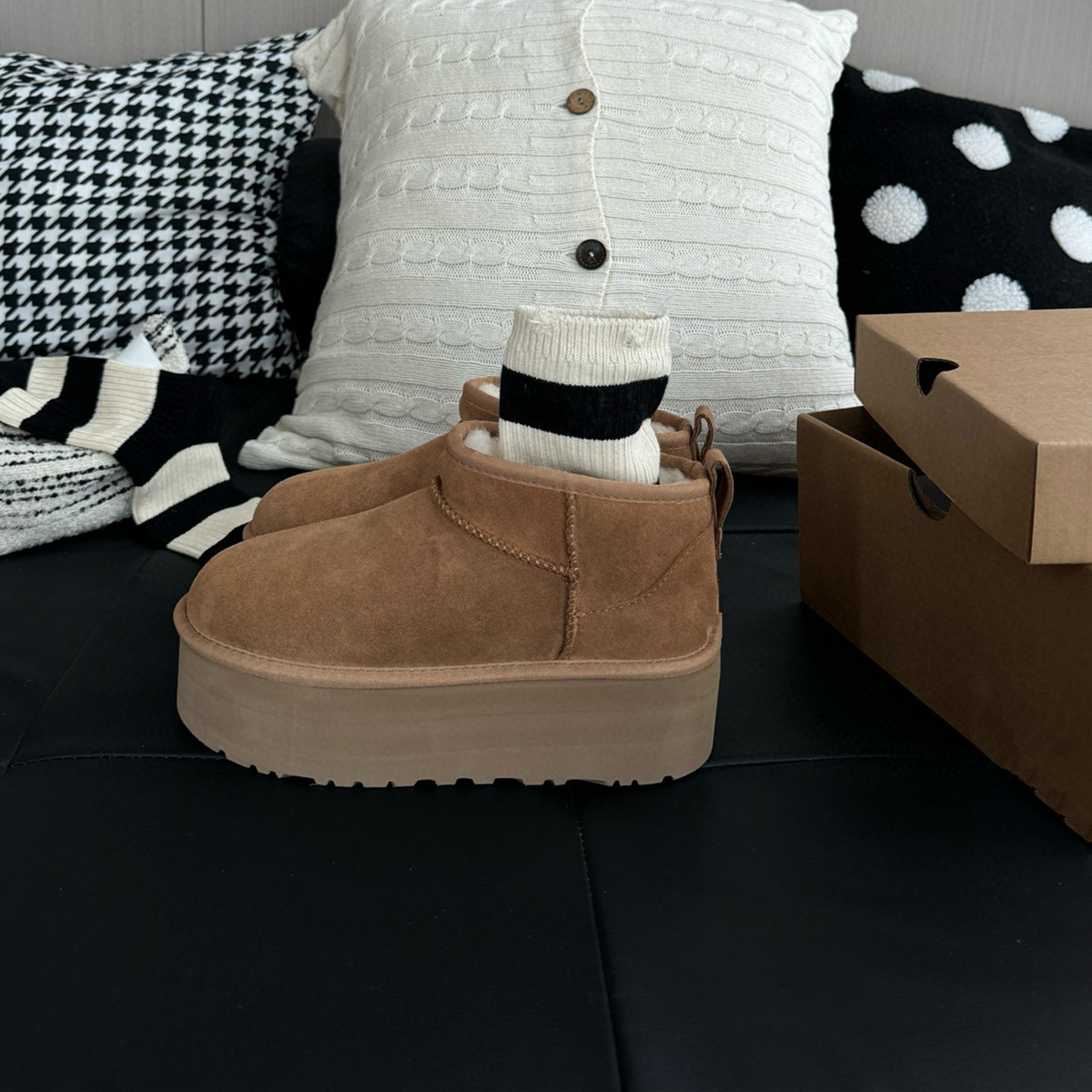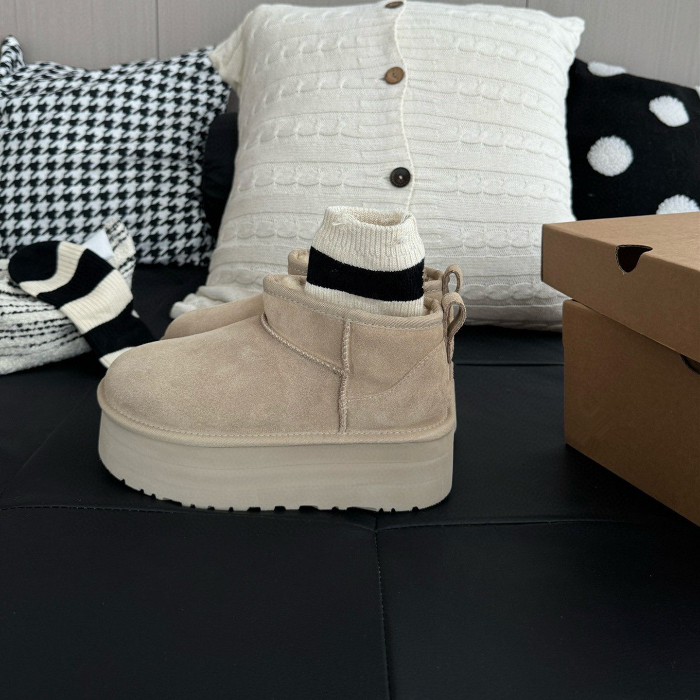 桑坡厚底雪地靴羊皮毛一体女25新款冬mini短筒周冬雨同款EASΕUGG