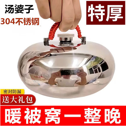 汤婆子304不锈钢暖脚壶热水袋灌水防爆暖水壶注水暖被窝神器宿舍