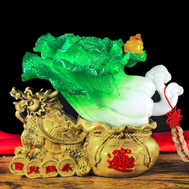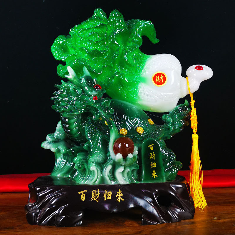 招财龙龟玉白菜摆件 家居家装饰品酒柜电视柜办公室客厅开业礼品