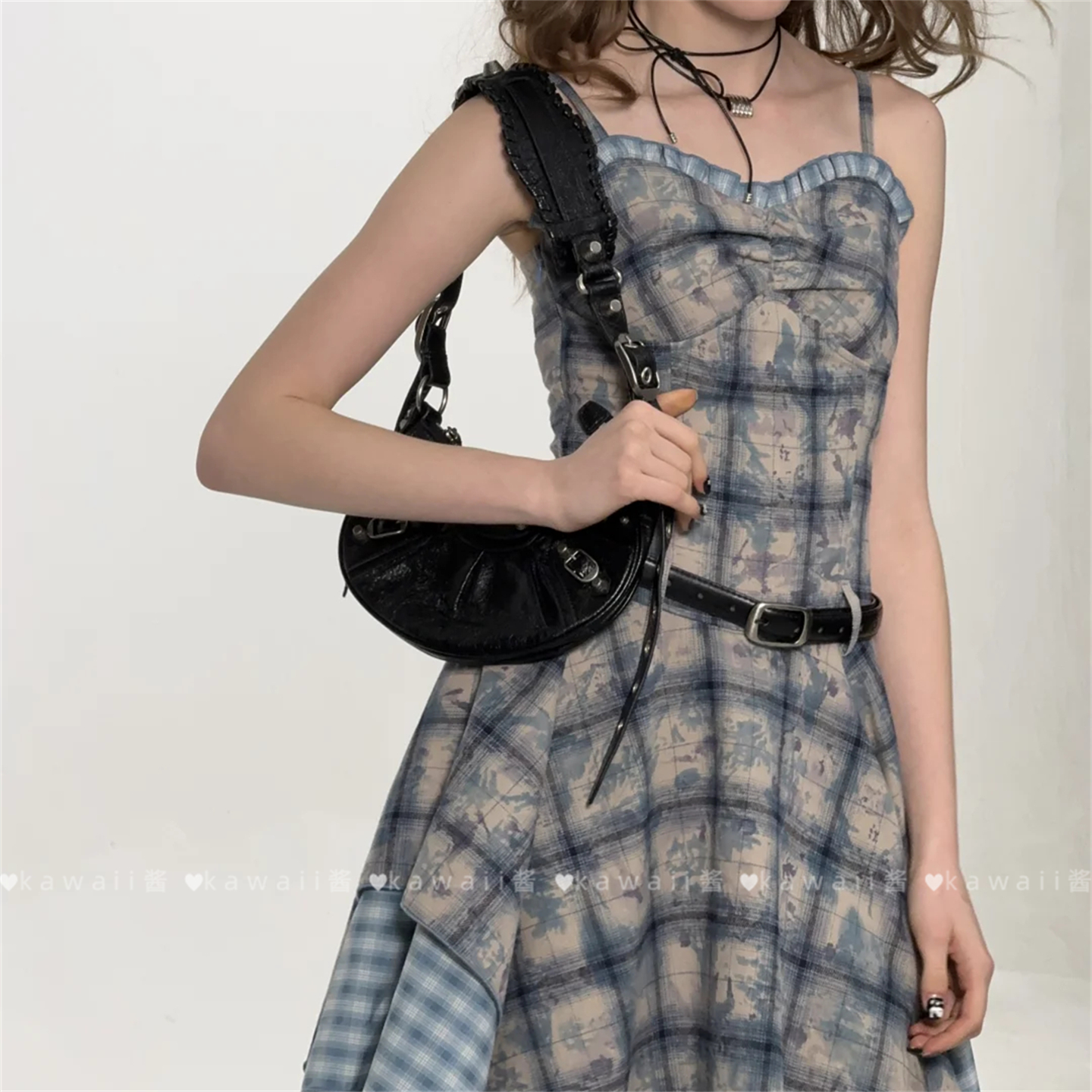 ins博主腰带软复古黑色韩国新款