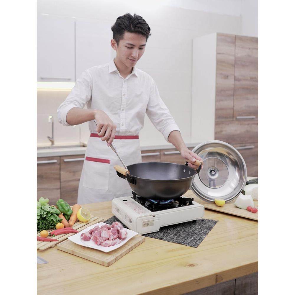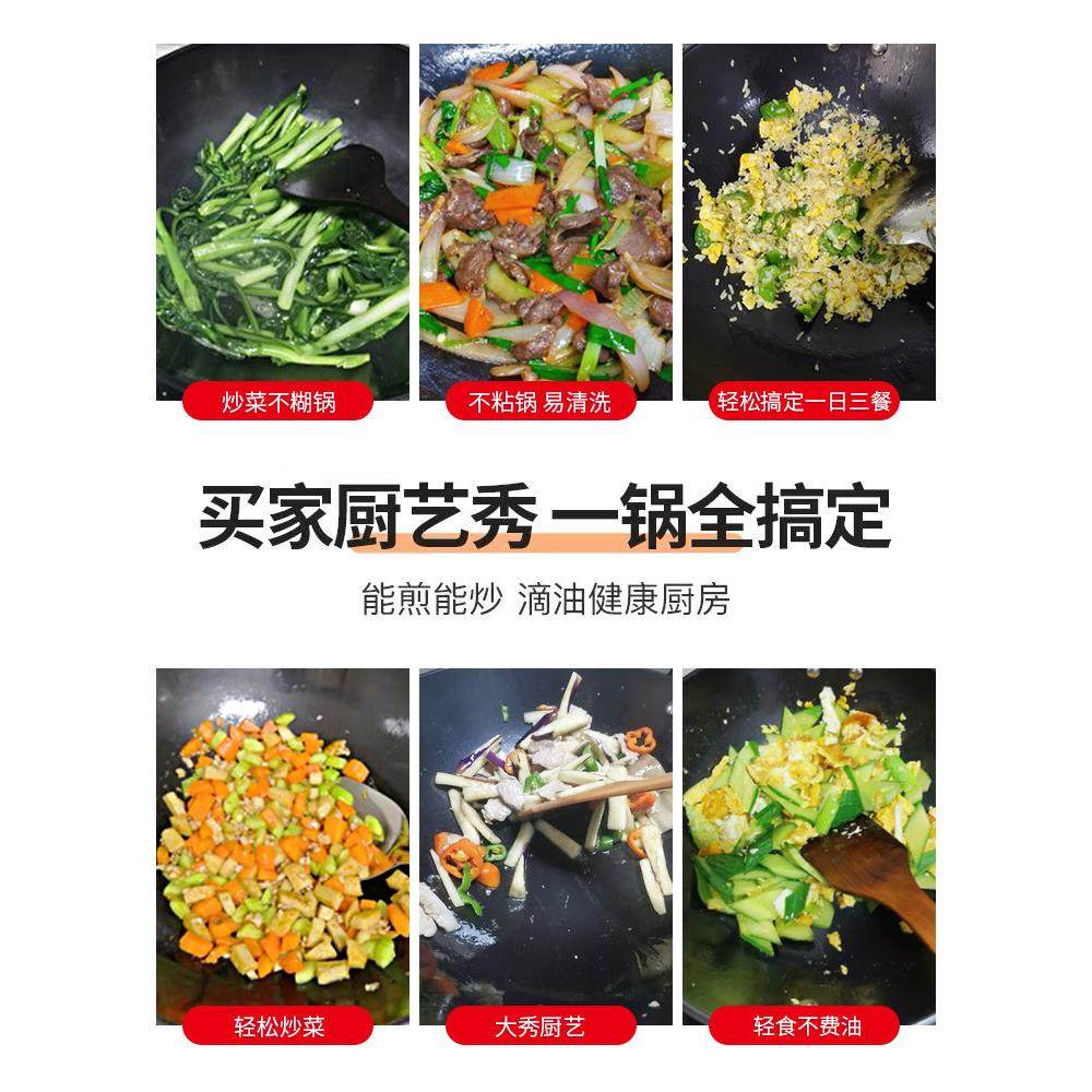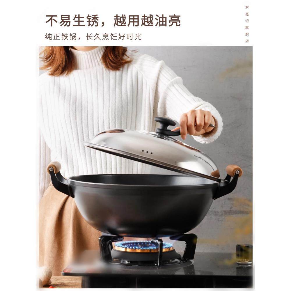 铁人铁锅炒锅双耳加深大铁锅家用无涂层生铸铁锅电磁炉燃气灶炒锅