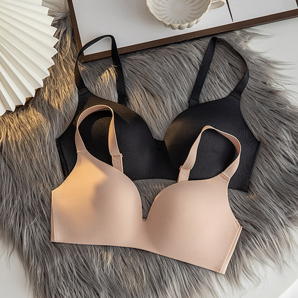 舒适无痕文胸无钢圈隐形内衣女一片式光面裸感大胸显小超薄款胸罩