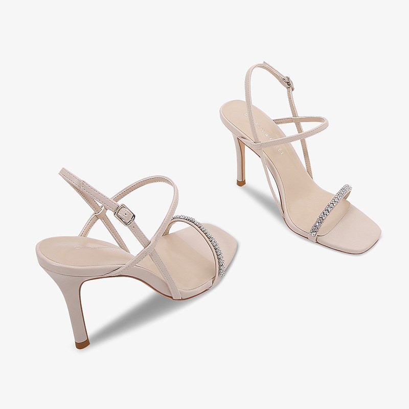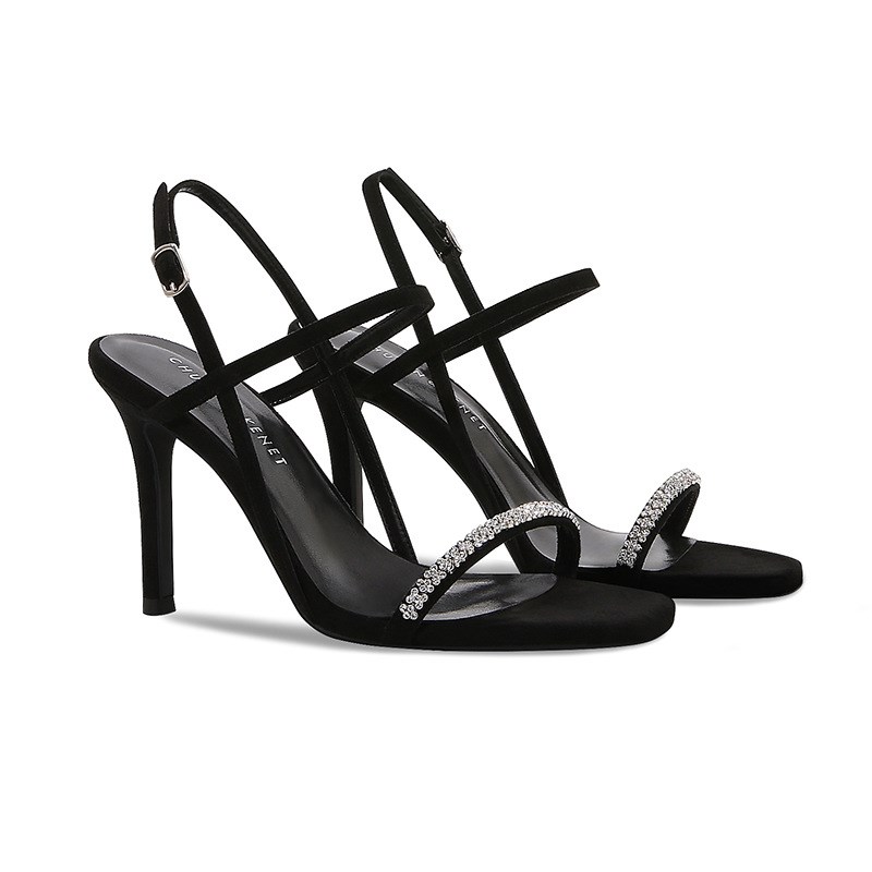 2024新款f夏季绑带凉鞋女黑色水钻一字扣带韩系网红高跟鞋女鞋矮
