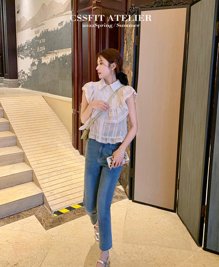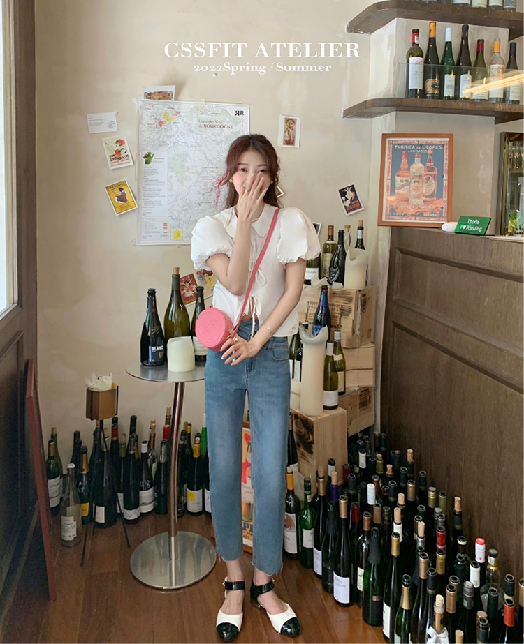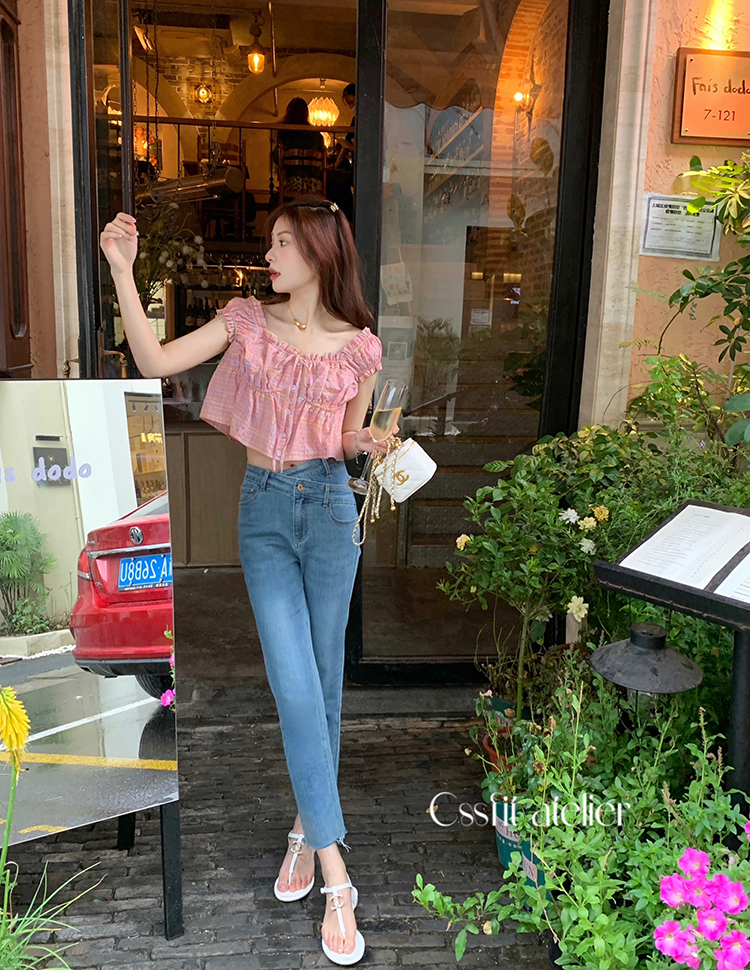 迟伞伞 jue美软牛仔我的天菜神裤不规则斜扣牛仔裤女修身直筒长裤