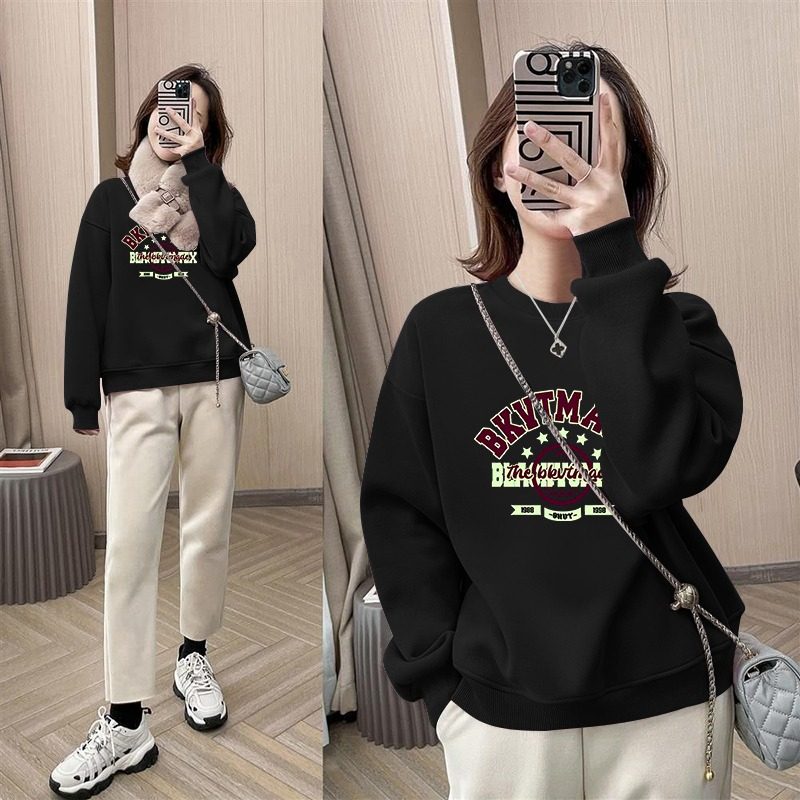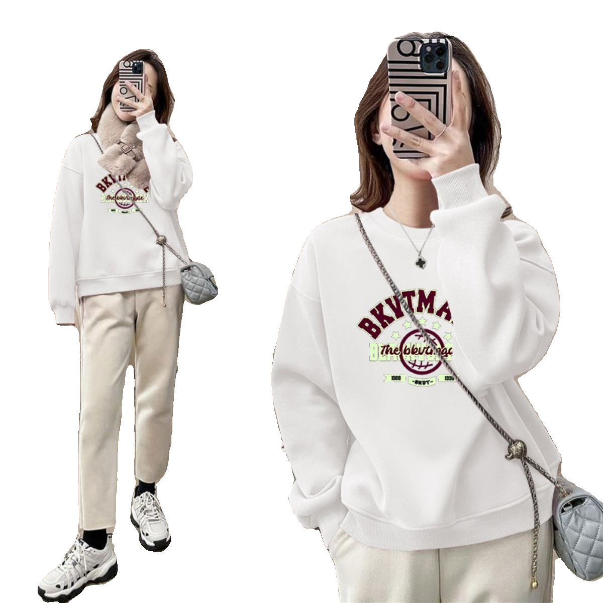 专柜清仓捡漏秋冬圆领套头卫衣女加绒加厚上衣显瘦小个子春秋薄款