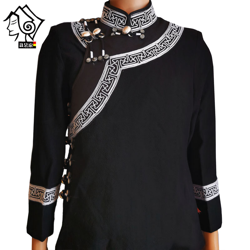 凉山彝族服饰男装品牌精品手工刺绣黑色上衣新郎装修身气质外套