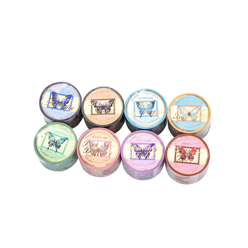 无界蝶谱烫金手帐胶带复古蝴蝶邮票英文盐系手帐拼贴装饰素材贴纸