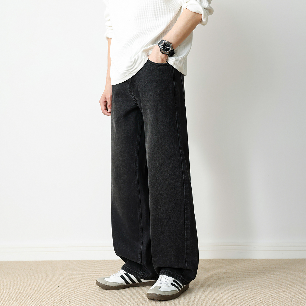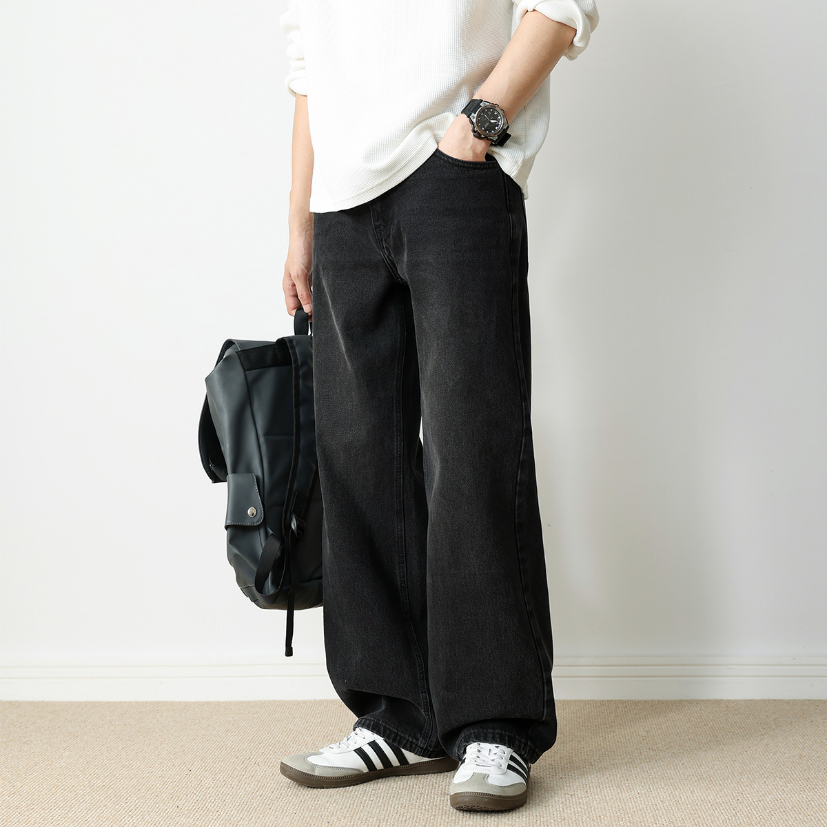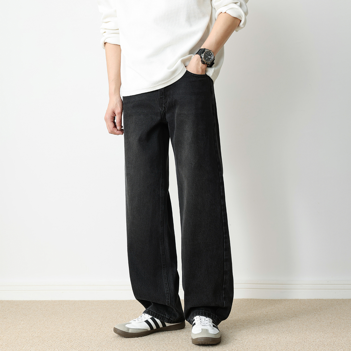 hansca440g复古水洗黑色牛仔裤2025秋季新款男潮牌高端直筒长裤子