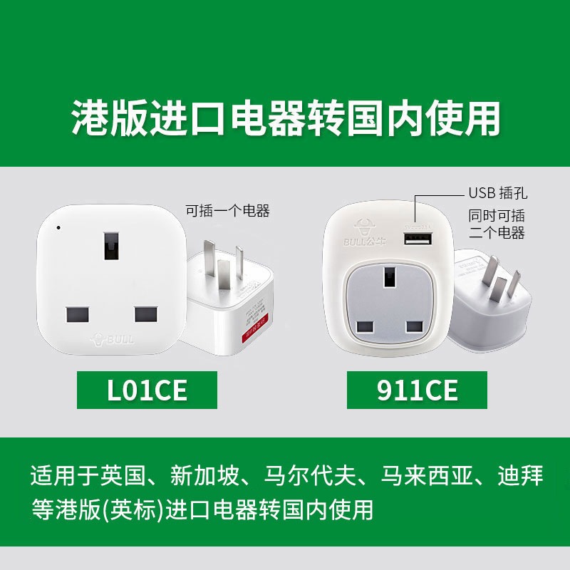 公牛英标转换器中国香港澳门新加坡马来西亚迪拜全球通用多用插头