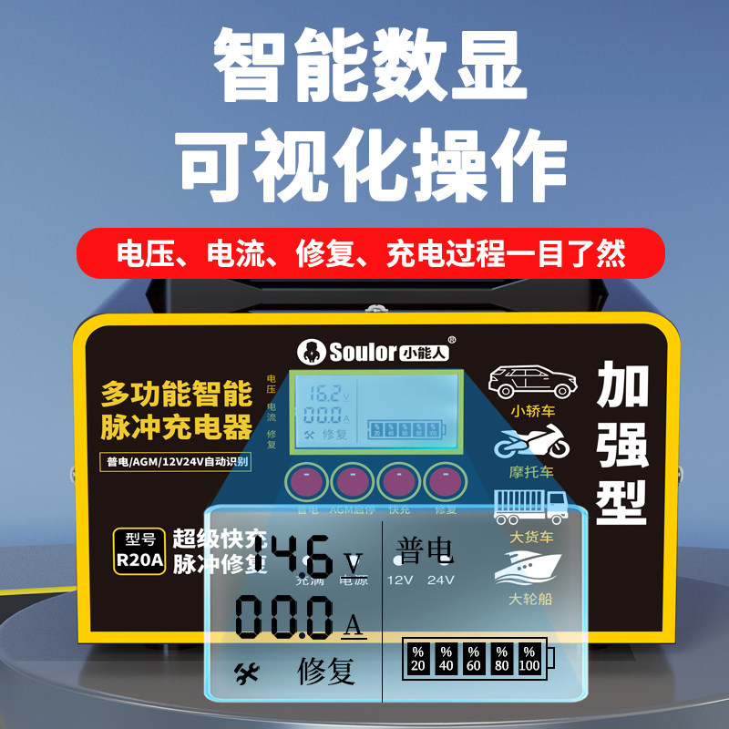 汽车电瓶充电器12v24v伏全智能摩托车充电自动脉冲修复型蓄电池