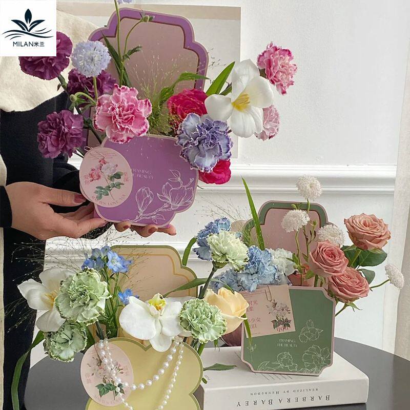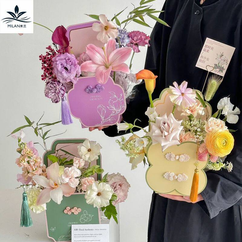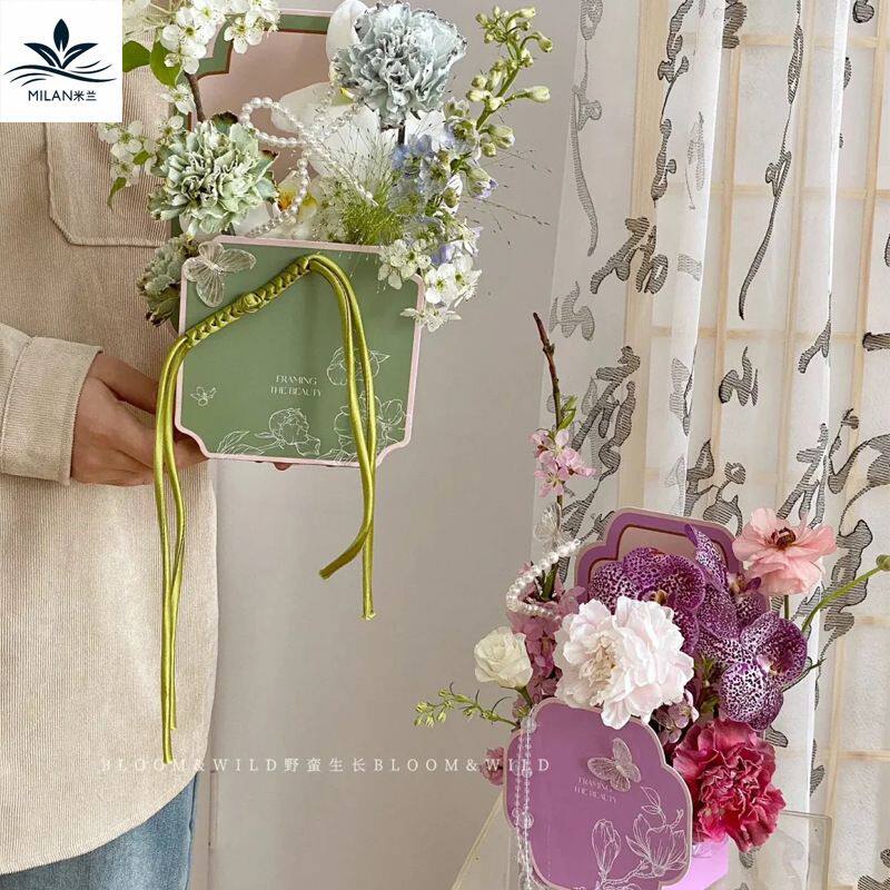 三八节新中式2D花盒花艺课插花花束手提盒鲜花礼盒国风复古礼物盒