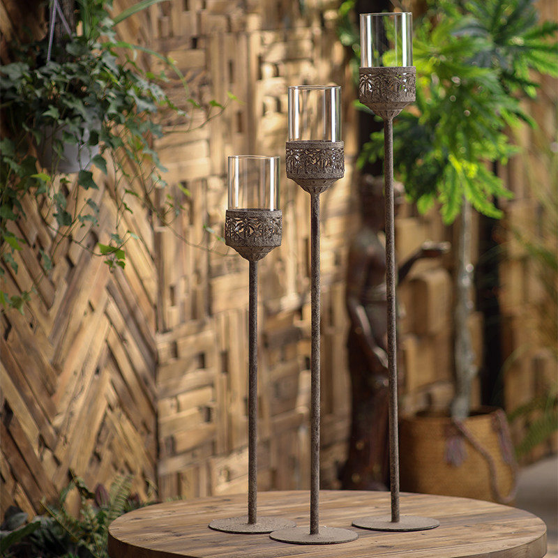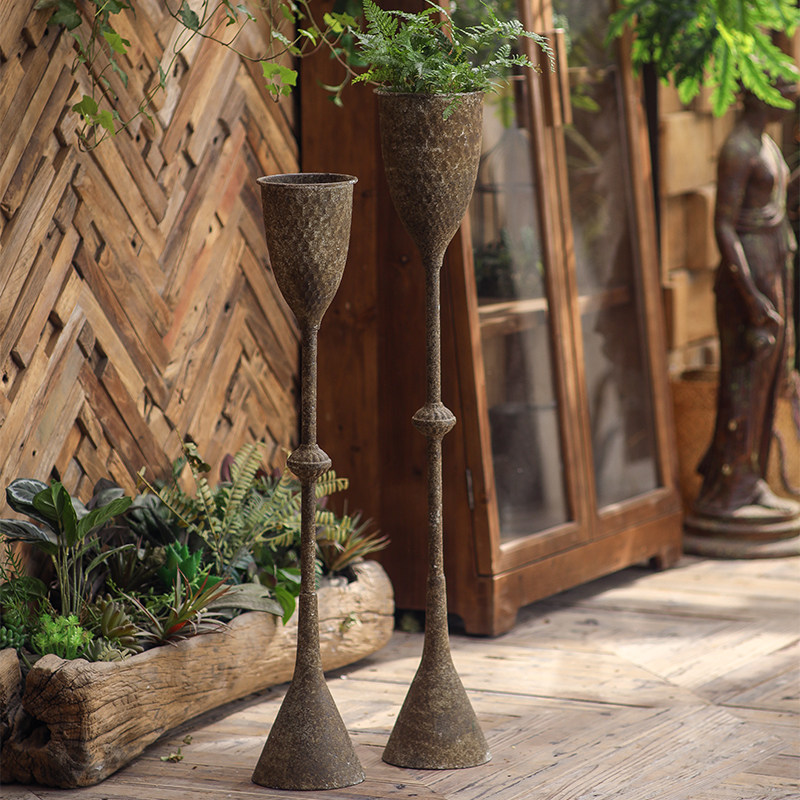 美式复古做旧铁艺防风烛台摆件花园庭院装饰蜡烛台工作室拍摄道具