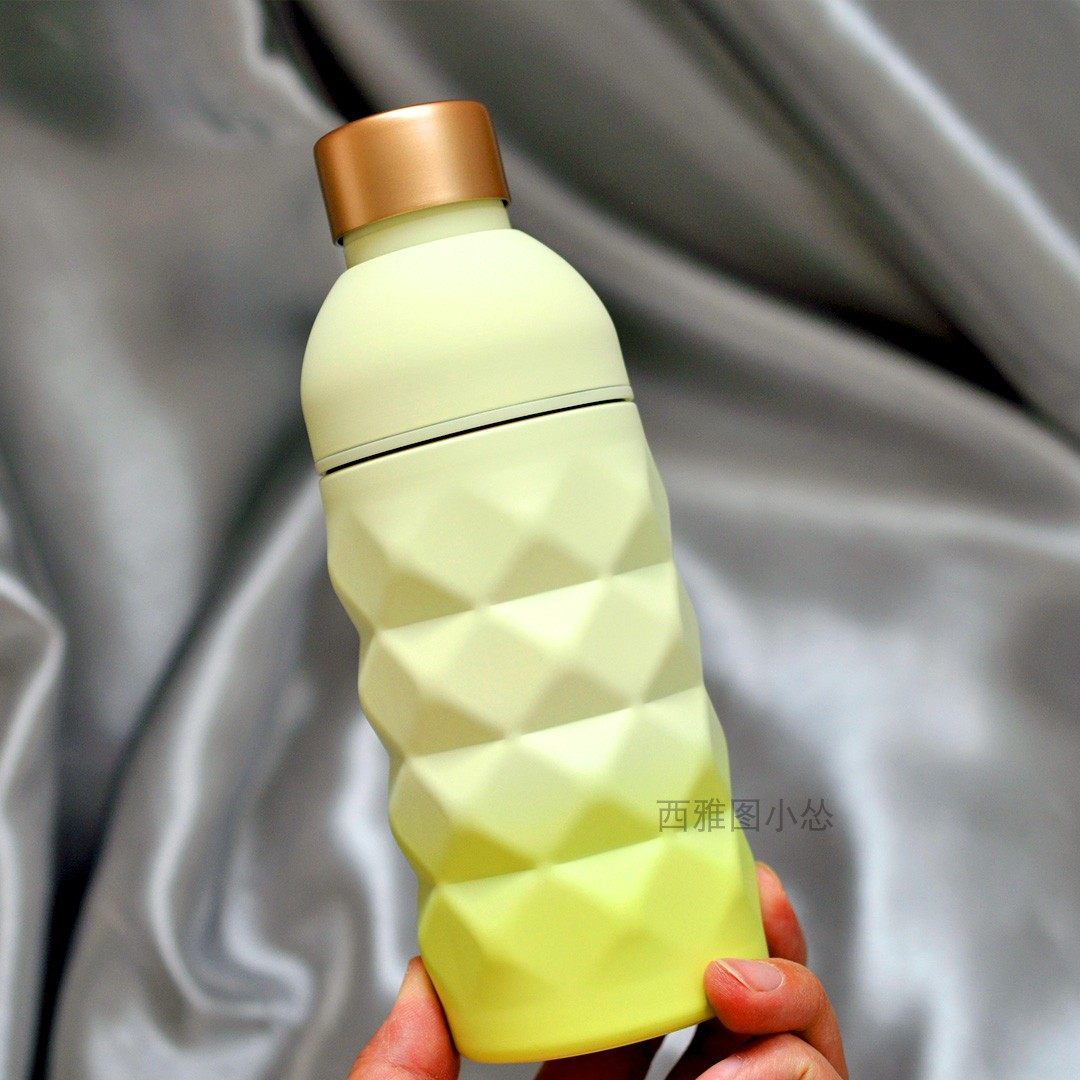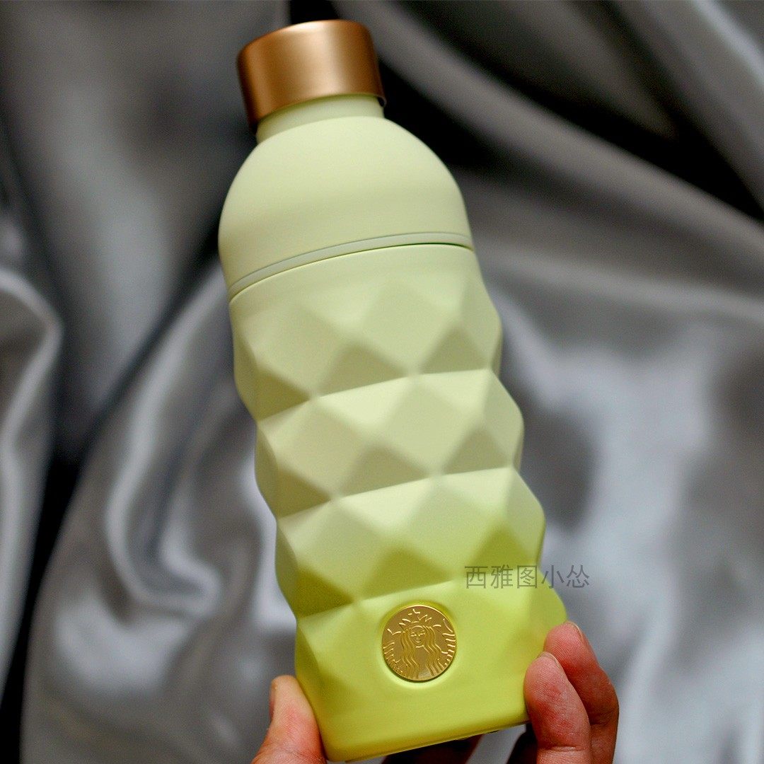 星巴克杯子幸运金款星空蓝钢盖带杯渐变菱格纹不锈钢随行保温杯