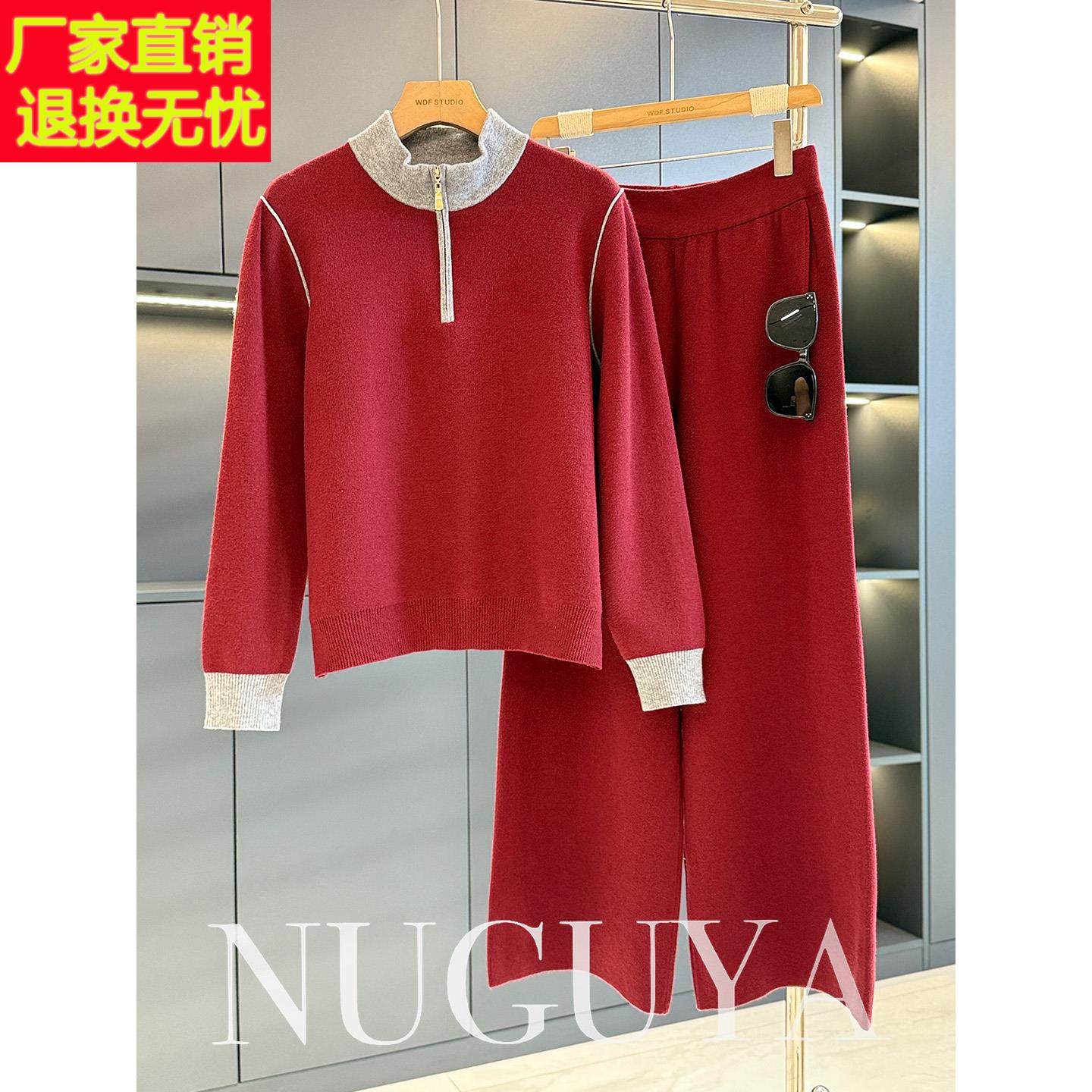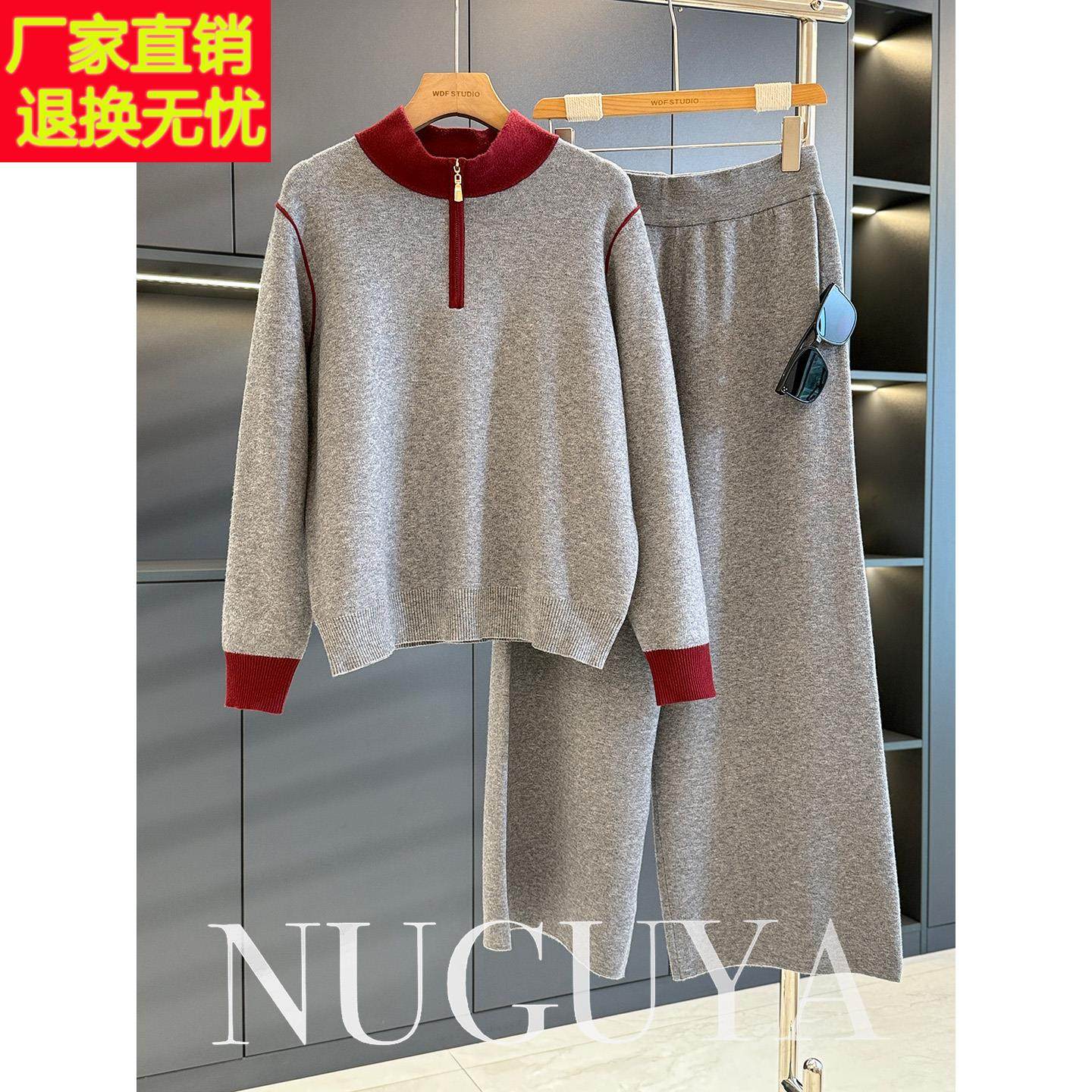 时尚休闲妈妈装针织衫套装秋装新款衣服气质百搭中老年开衫两件套