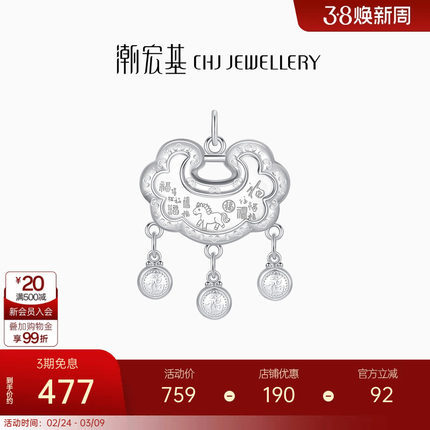 潮宏基生肖马足银吊坠银饰挂坠坠子本命年新生周岁礼物儿童宝宝