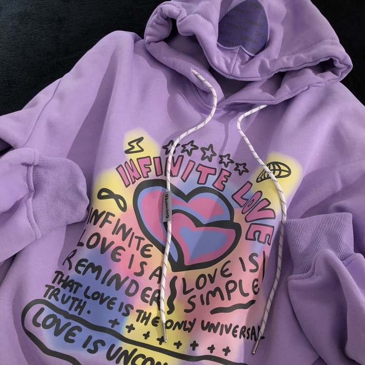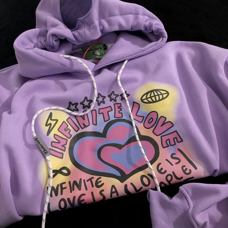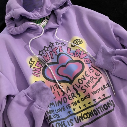 Daiwing 遗漏的快乐碎片 秋冬美式复古学生帽衫卡通情侣连帽卫衣
