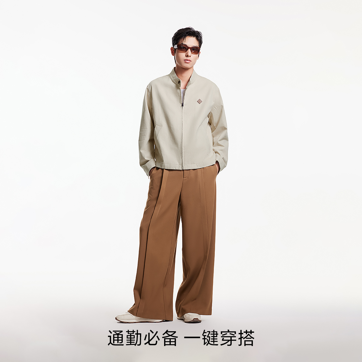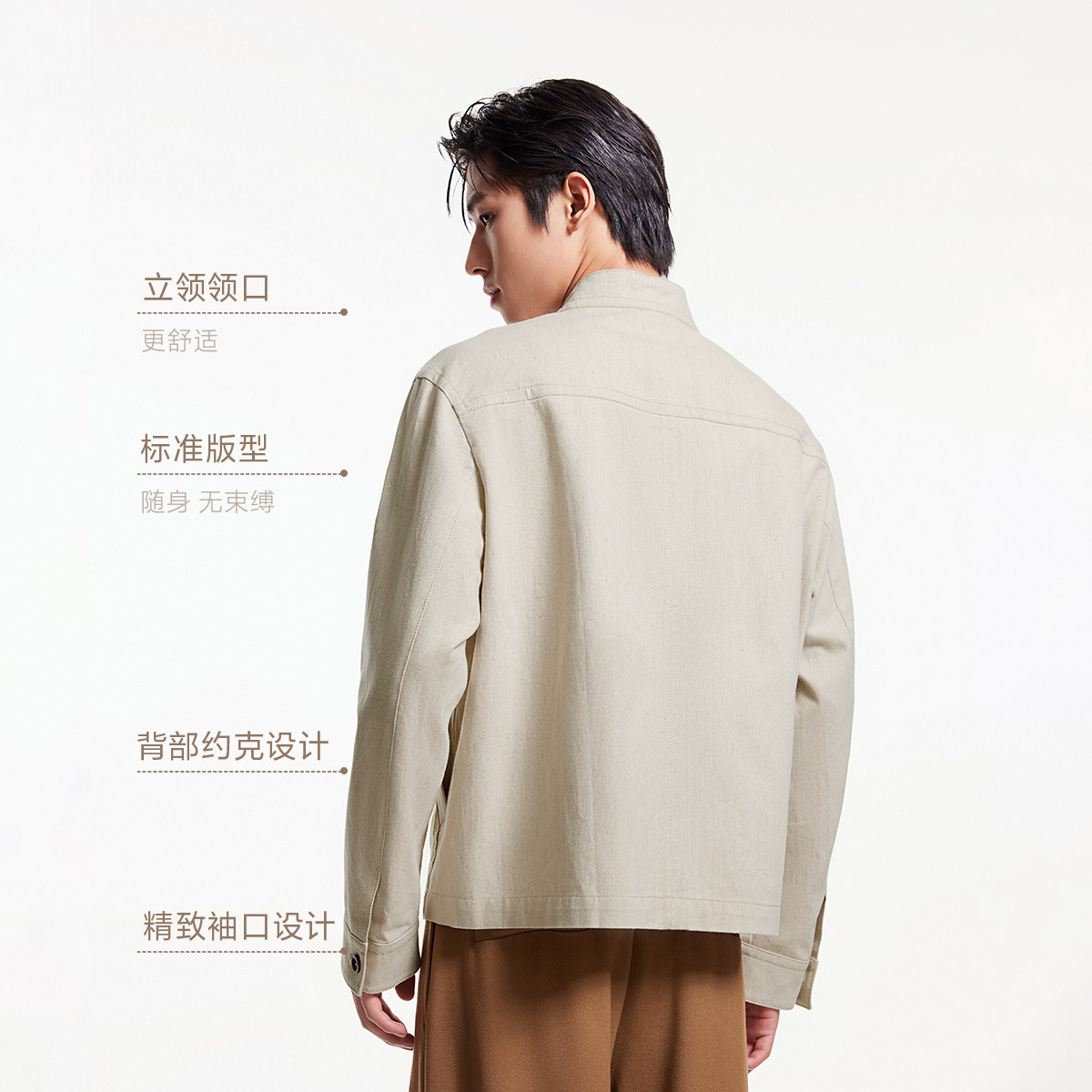 vq区绫致杰克琼斯春夏百搭度假风logo皮标常规款立领夹克外套男