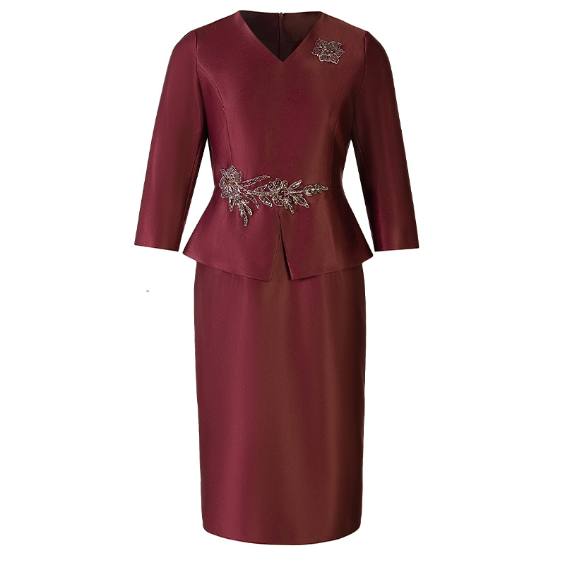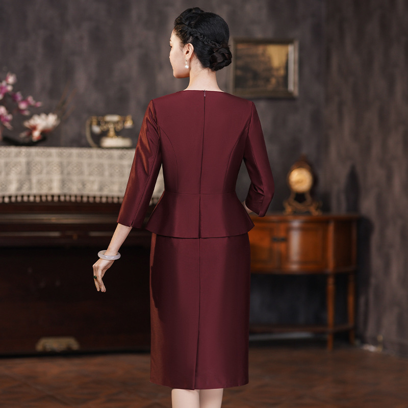 优质!2024春装新款紫红色假两件遮肚显瘦连衣裙中老妈妈气质通勤