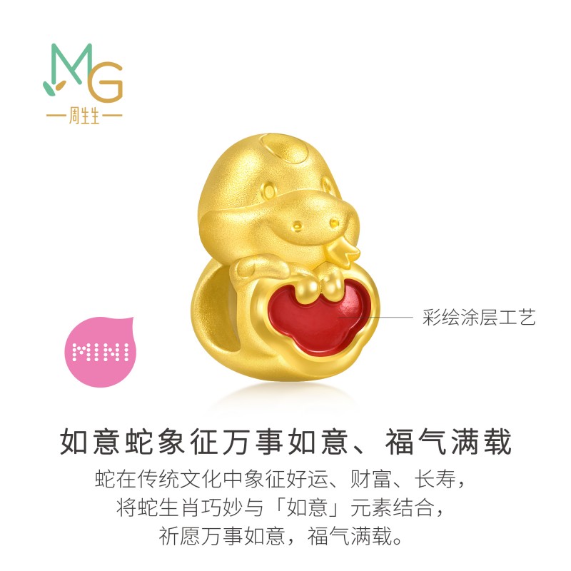 周生生黄金足金Charme宝贝本命年如意蛇转运珠5D硬金95499C