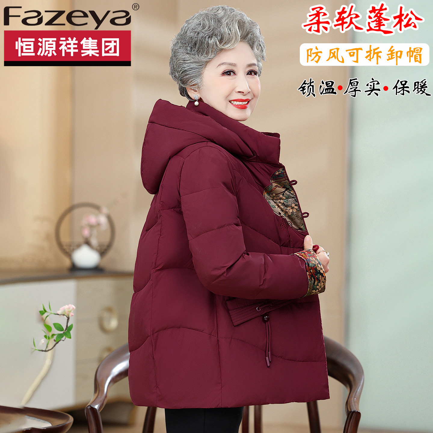 恒源祥集团FAZEYA中老年妈妈短款女羽绒服奶奶白鸭绒小个子厚外套
