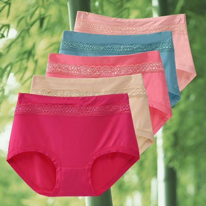 5条装竹炭纤维中腰内裤女莫代尔纯棉大码胖MM无痕高腰女装三角裤